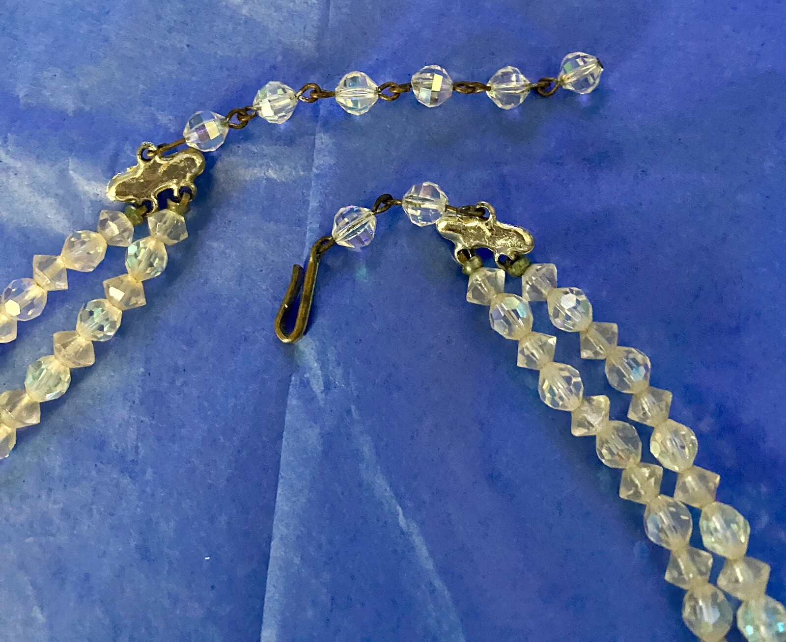как выглядит Vintage 2 Strand Aurora Borealis Clear Faceted Beaded Necklace Choker 16 фото