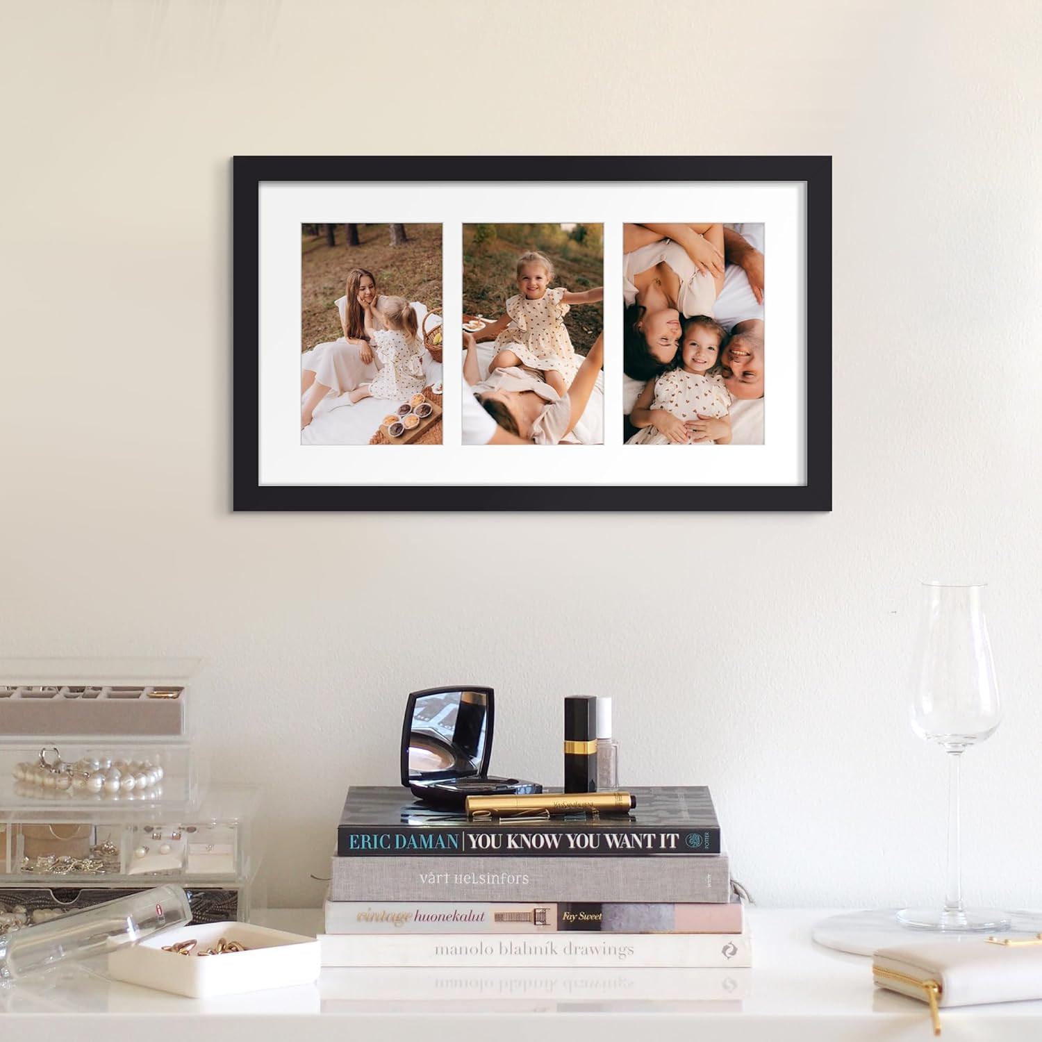 8X14 Collage Picture Frame, Display Pictures 3 4X6 with Mat or 8X14 without Mat,