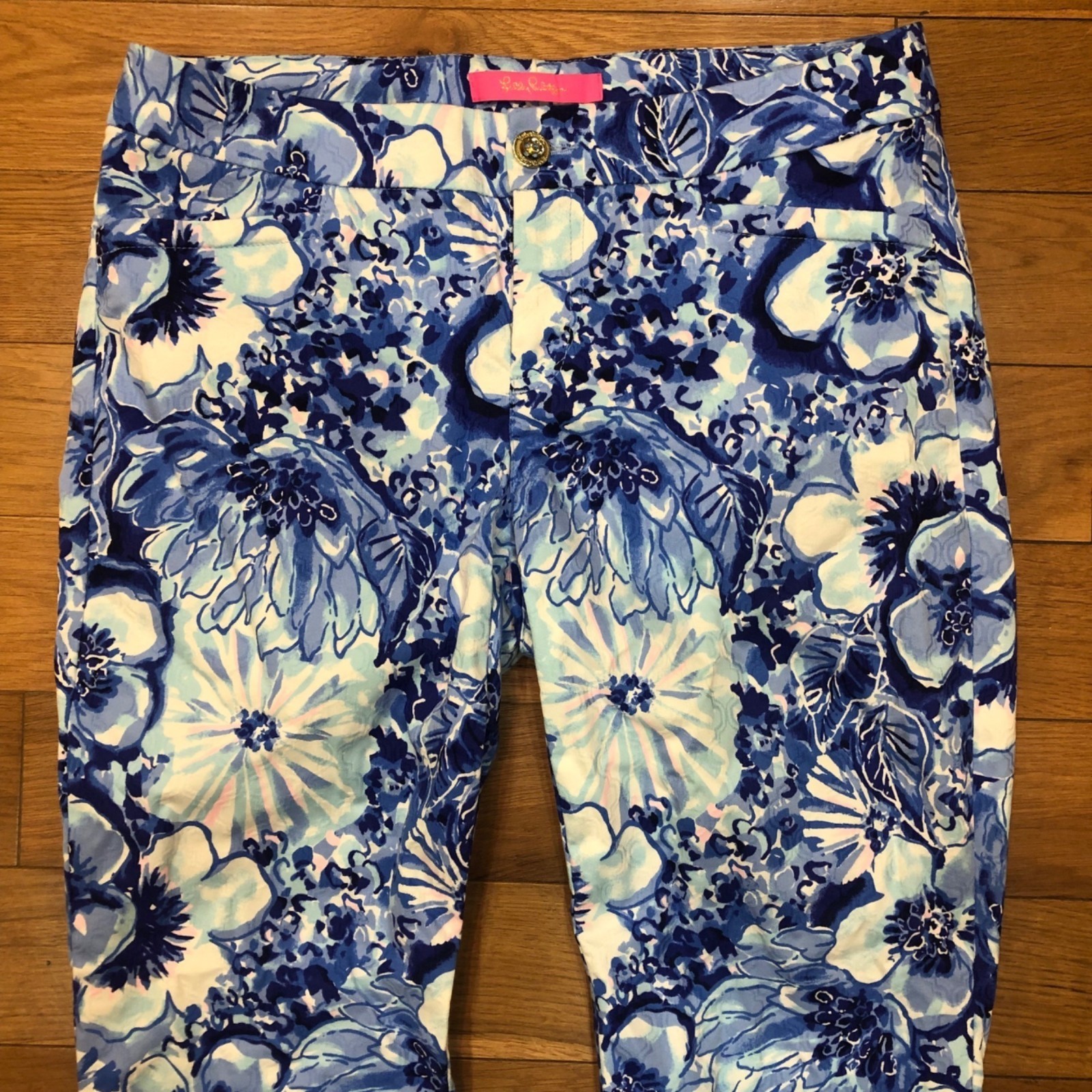 как выглядит Lilly Pulitzer Blue White Floral Straight Leg Pants Size 4 фото
