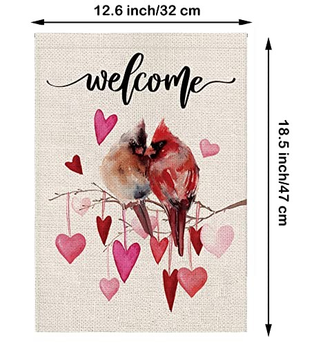 Welcome Valentine's Day Garden Flag Cardinal Love Heart Vertical Double Sided Ga