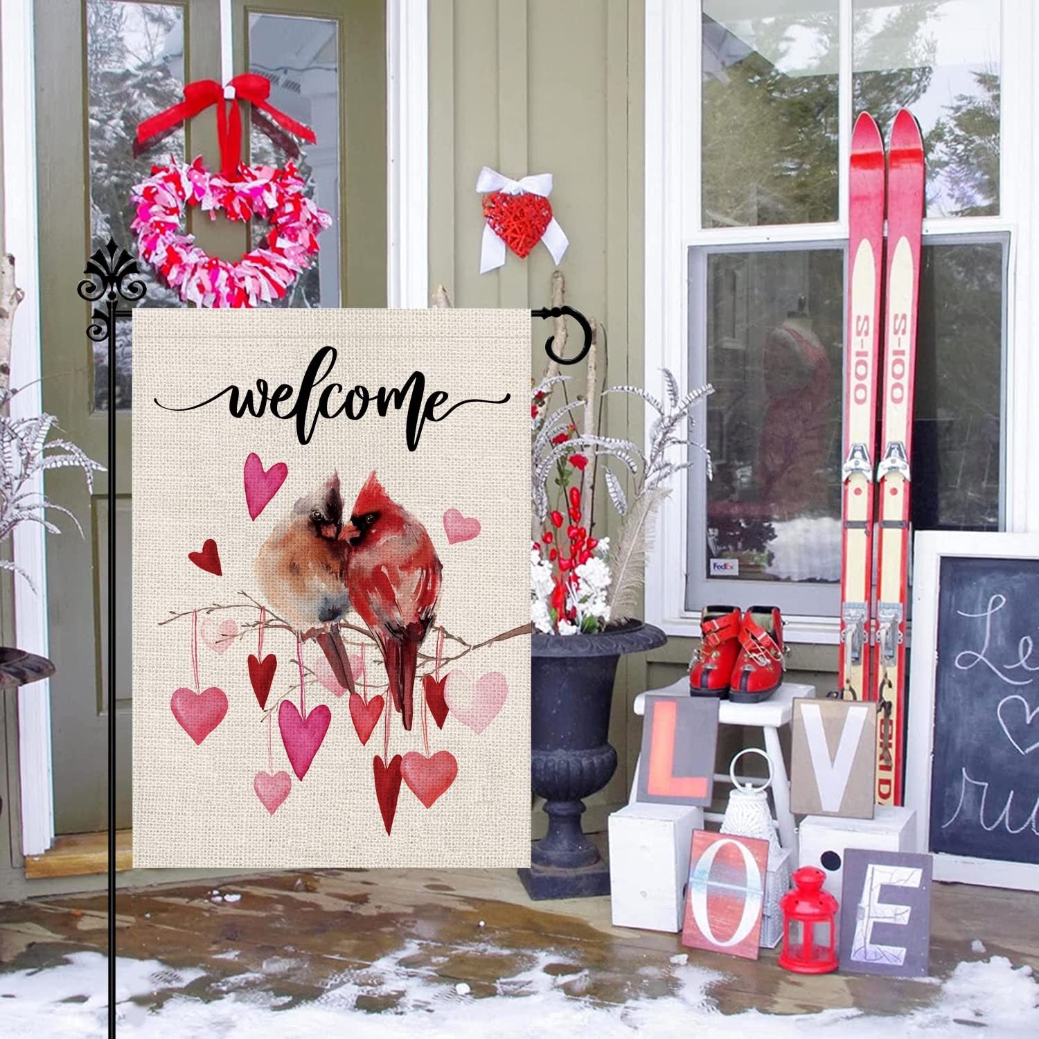 как выглядит Welcome Valentines Day Garden Flag Cardinal Love Heart Vertical Double Sided Ga фото