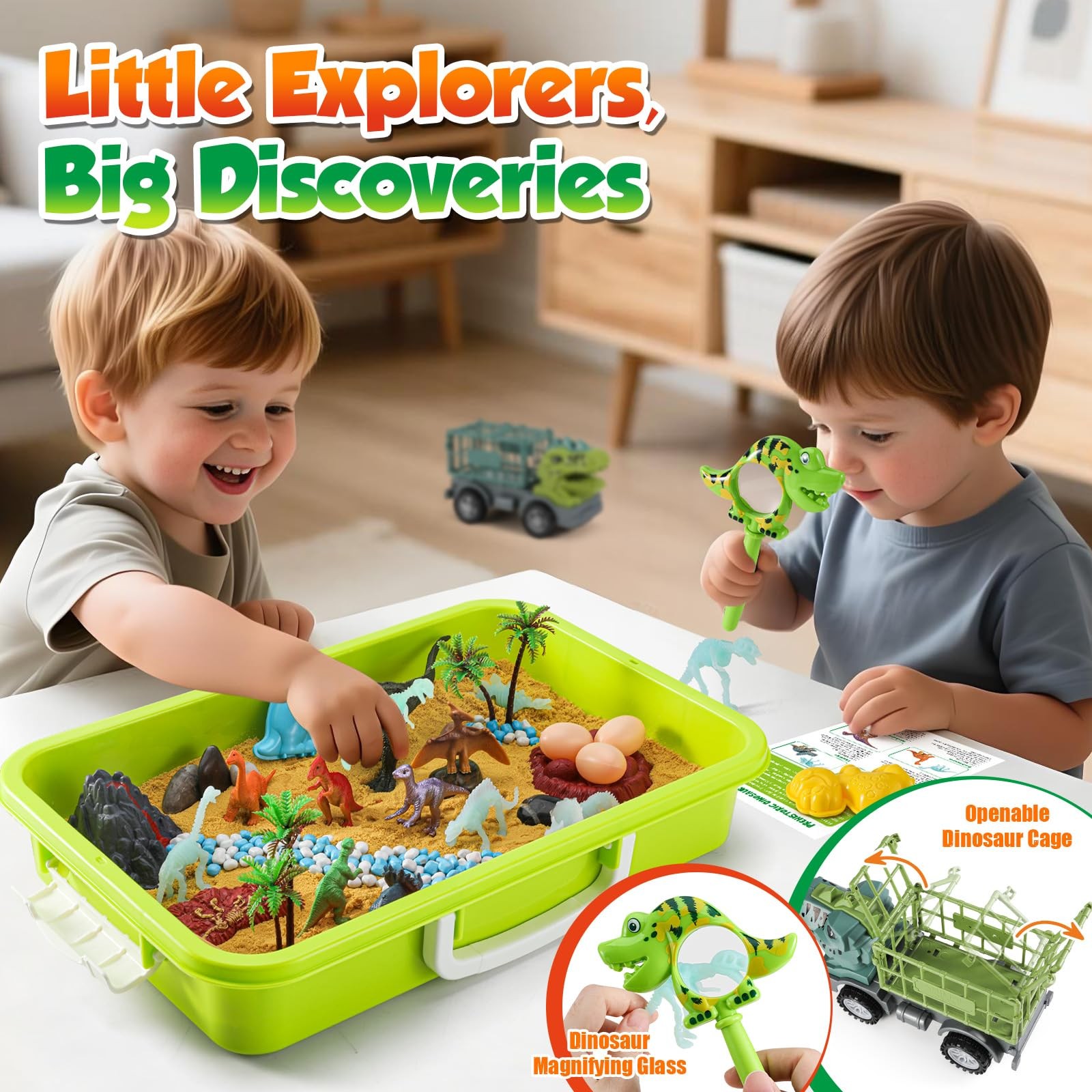 Dinosaur Sensory Bin Toys,Play Sand Art Kit with 2.2lbs Sensory Play Sand,Glo...