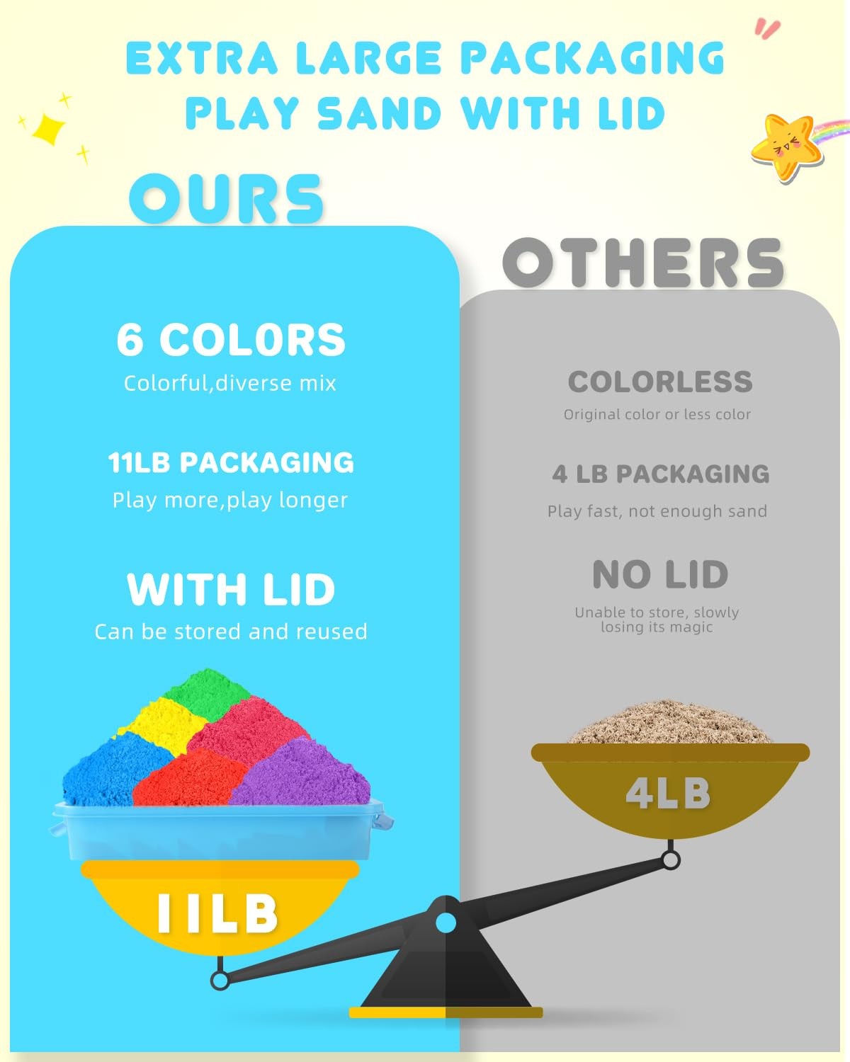 Play Sand for Kids, 11lbs of 6 Colored Sands, Magic Sand Bulk, Play Sand for ...