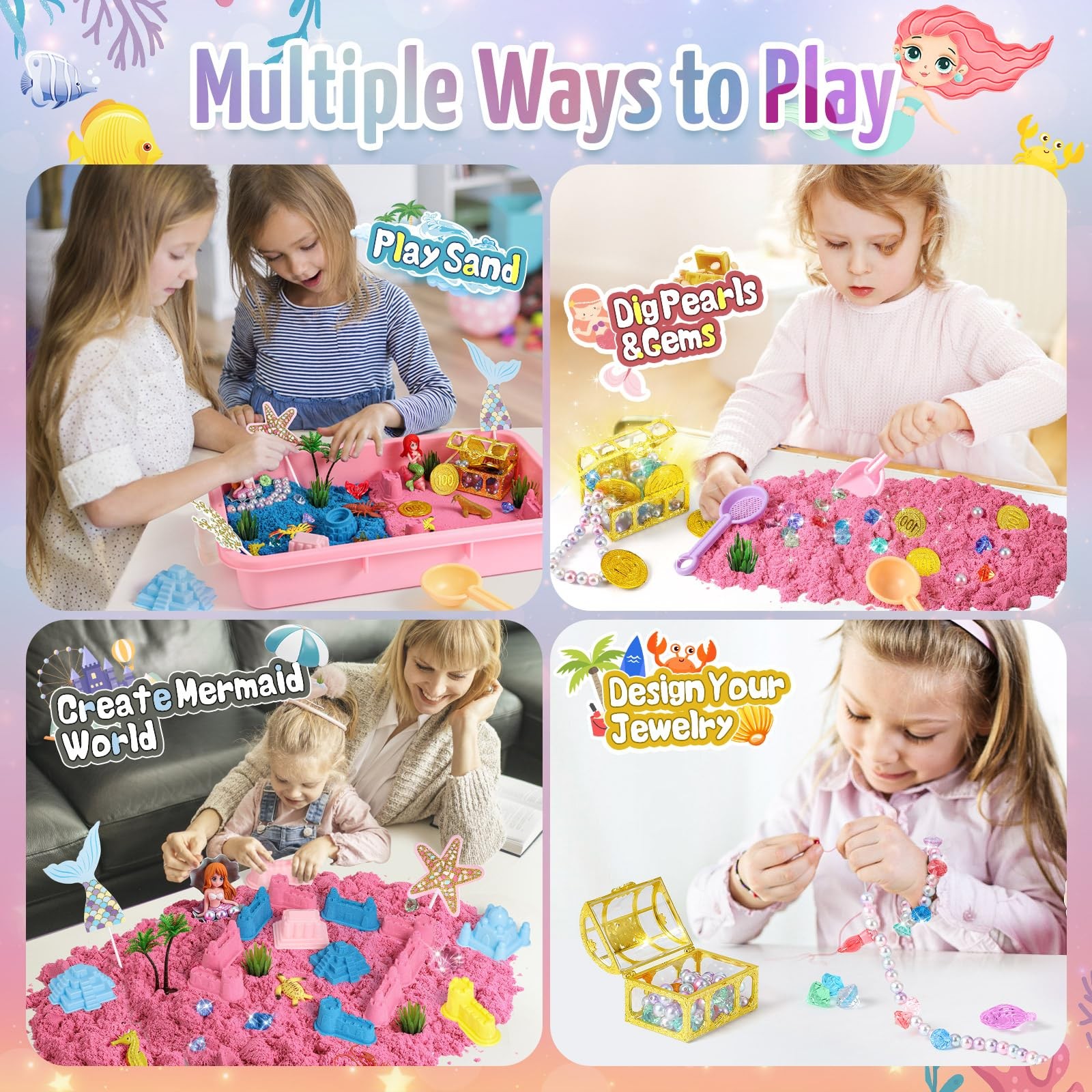 Mermaid Sensory Bin,Play Sand Art Kit for Girls and Boys with 2.2lbs Sensory ...