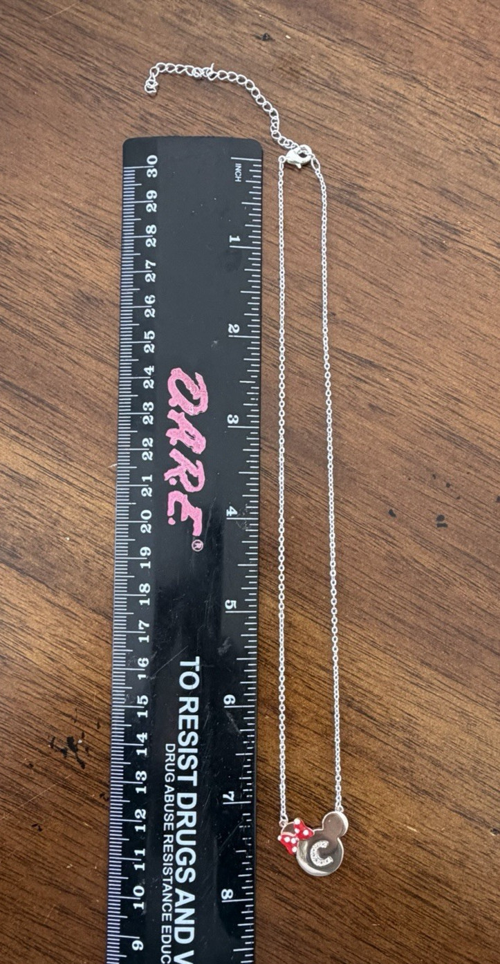 Disney Parks Minnie Mouse Icon Letter C Silver Color Necklace w/ Extender