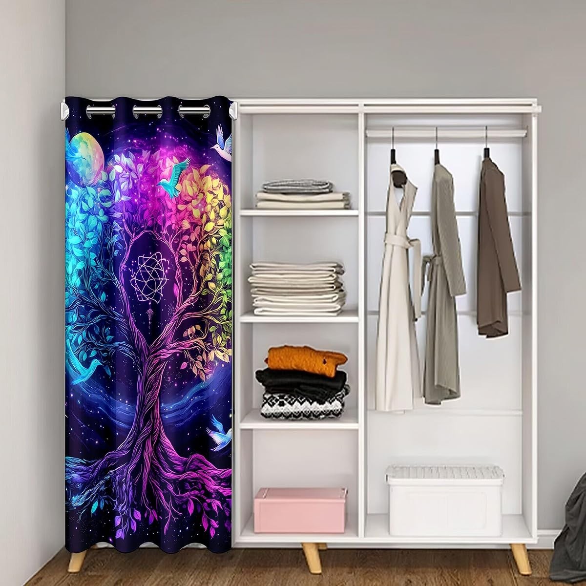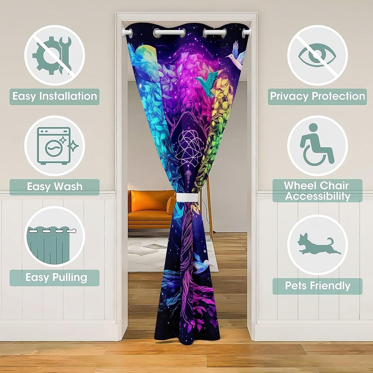 Tree of Life Doorway Curtain,Exotic Style Birds Tree Closet Door Cover Curtai...