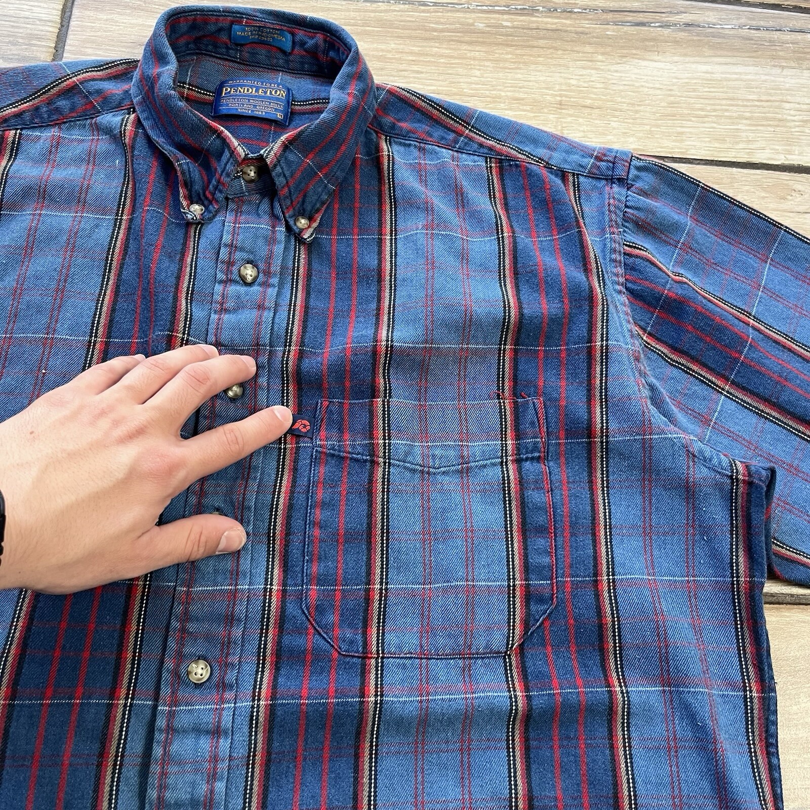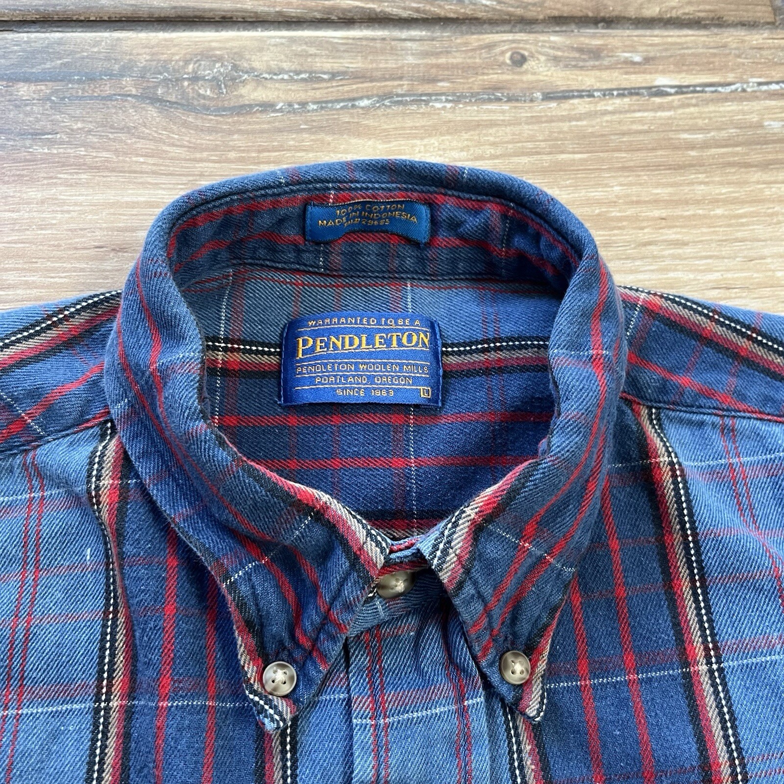 как выглядит Pendleton Plaid Shirt Button Up Blue Plaid 100 Cotton Mens Size L фото