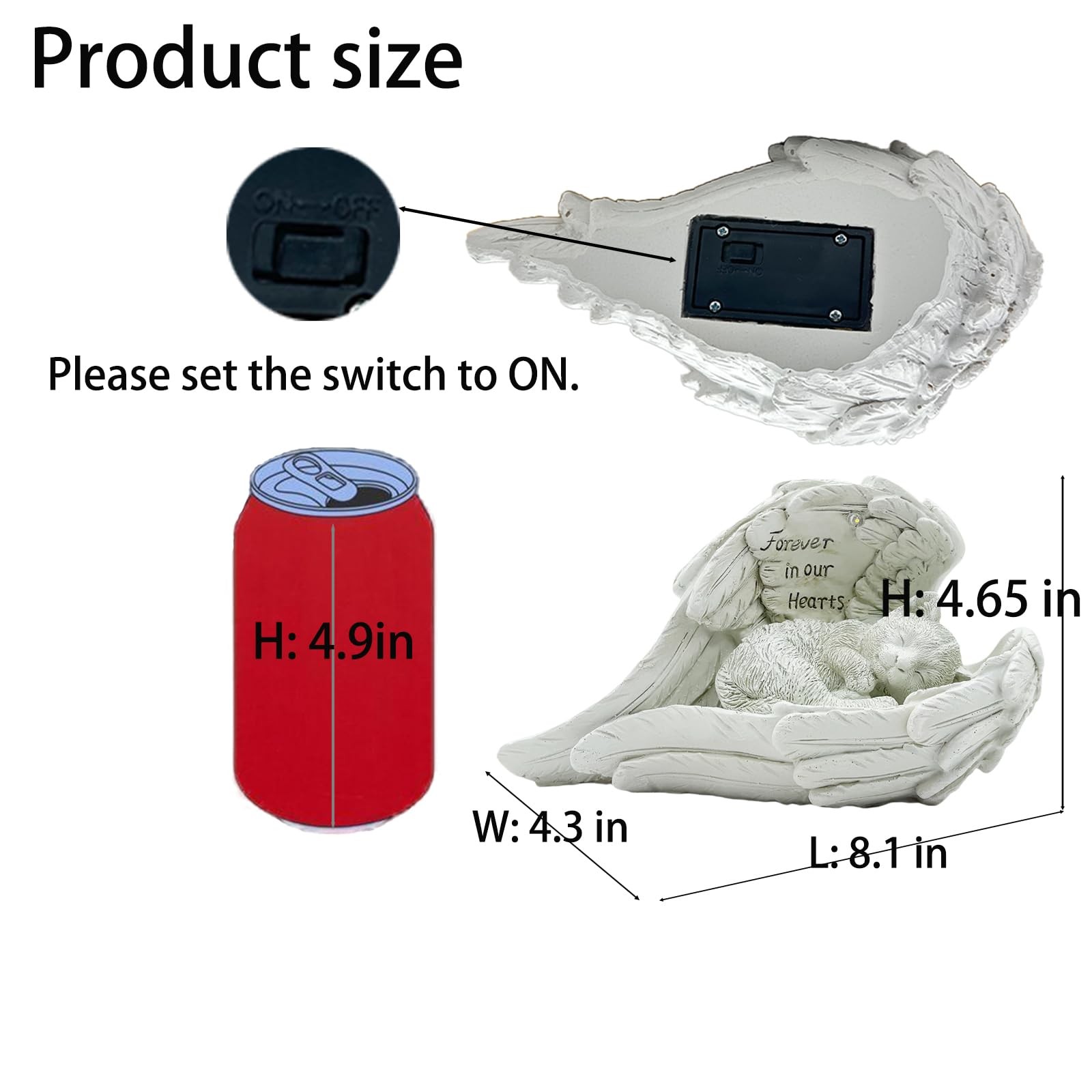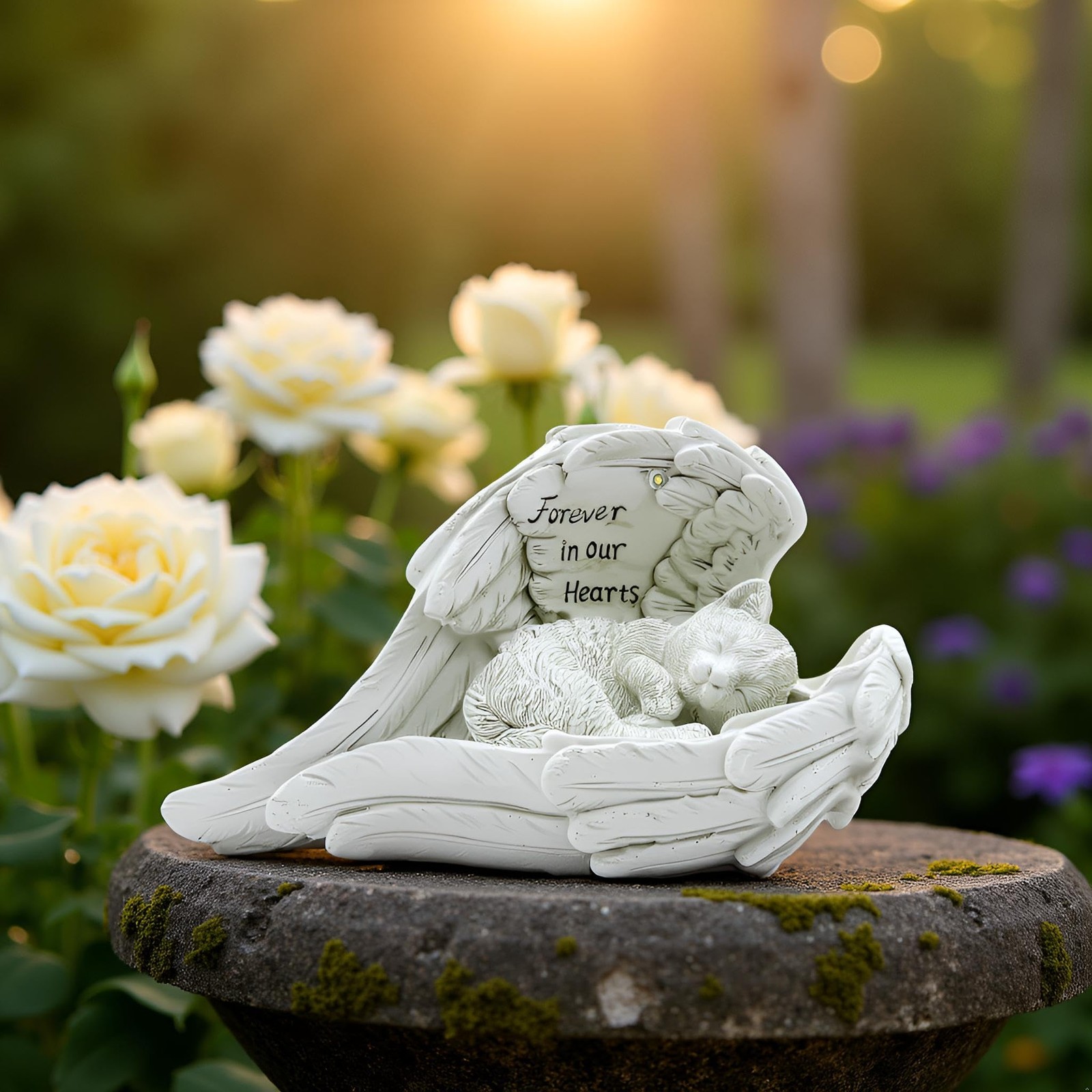 Angel Cat Memorial Statue Solar Light Resin Pet Figurine Garden Loss Gift