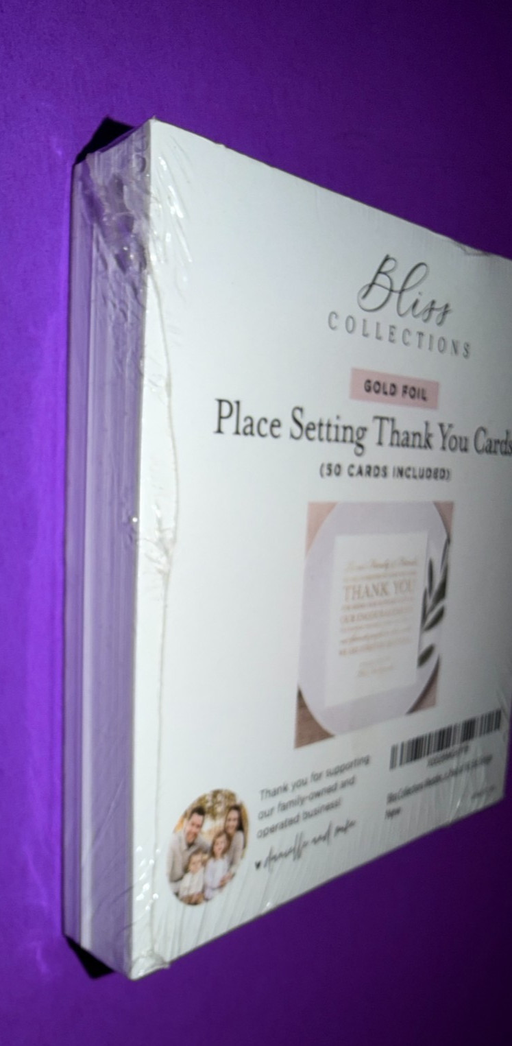 50 Bliss Collections White Gold Wedding Place Setting Thank You Cards 5x5 NEW