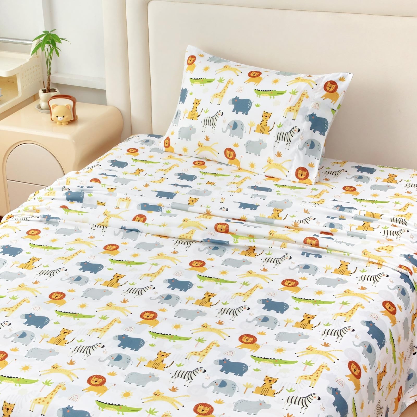 Kids Twin Sheet Set Wild Animal, 3 Pieces Sheets for Boys Girls, Soft Print...