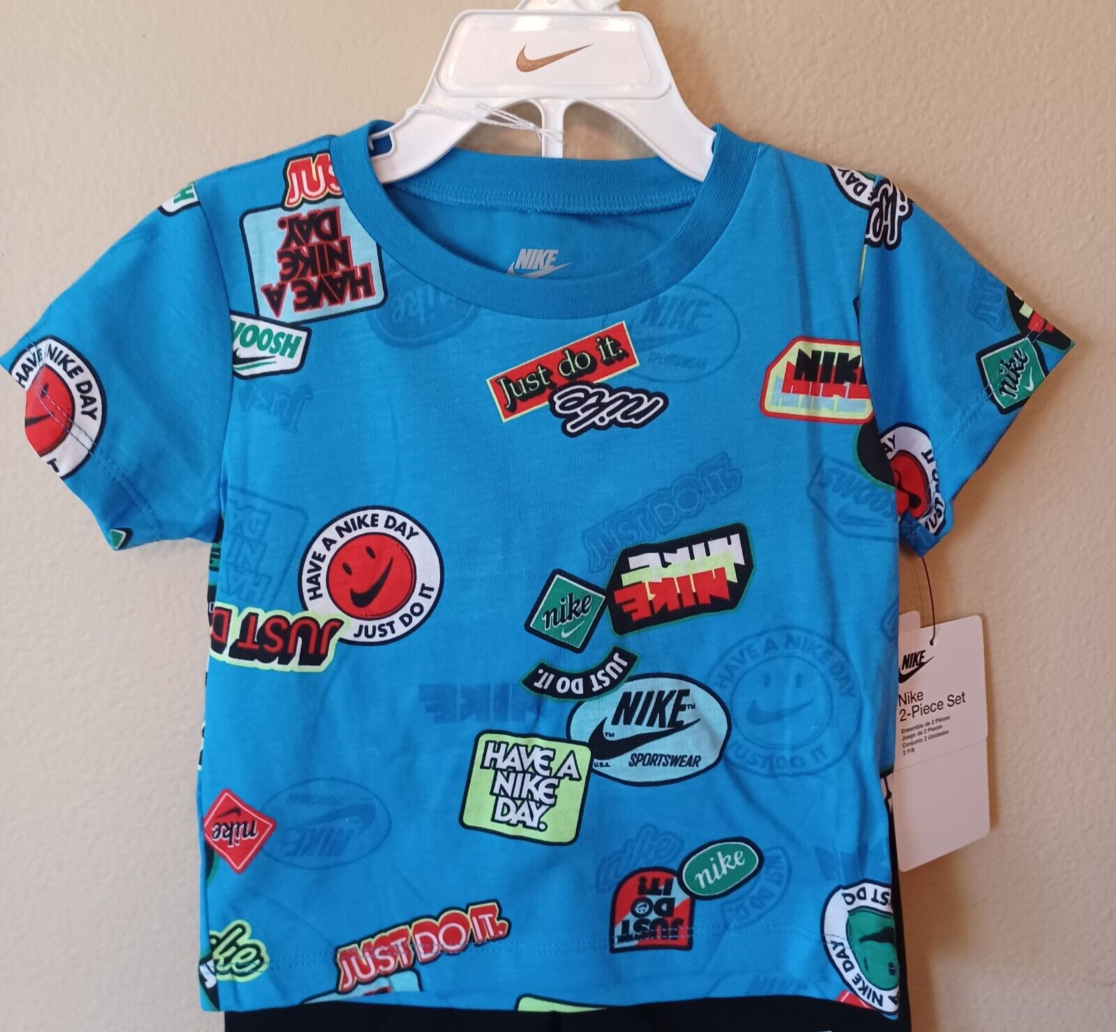 Nike Short Sleeve T-Shirt Shorts Set-2T Boys Blue All Over Graphics
