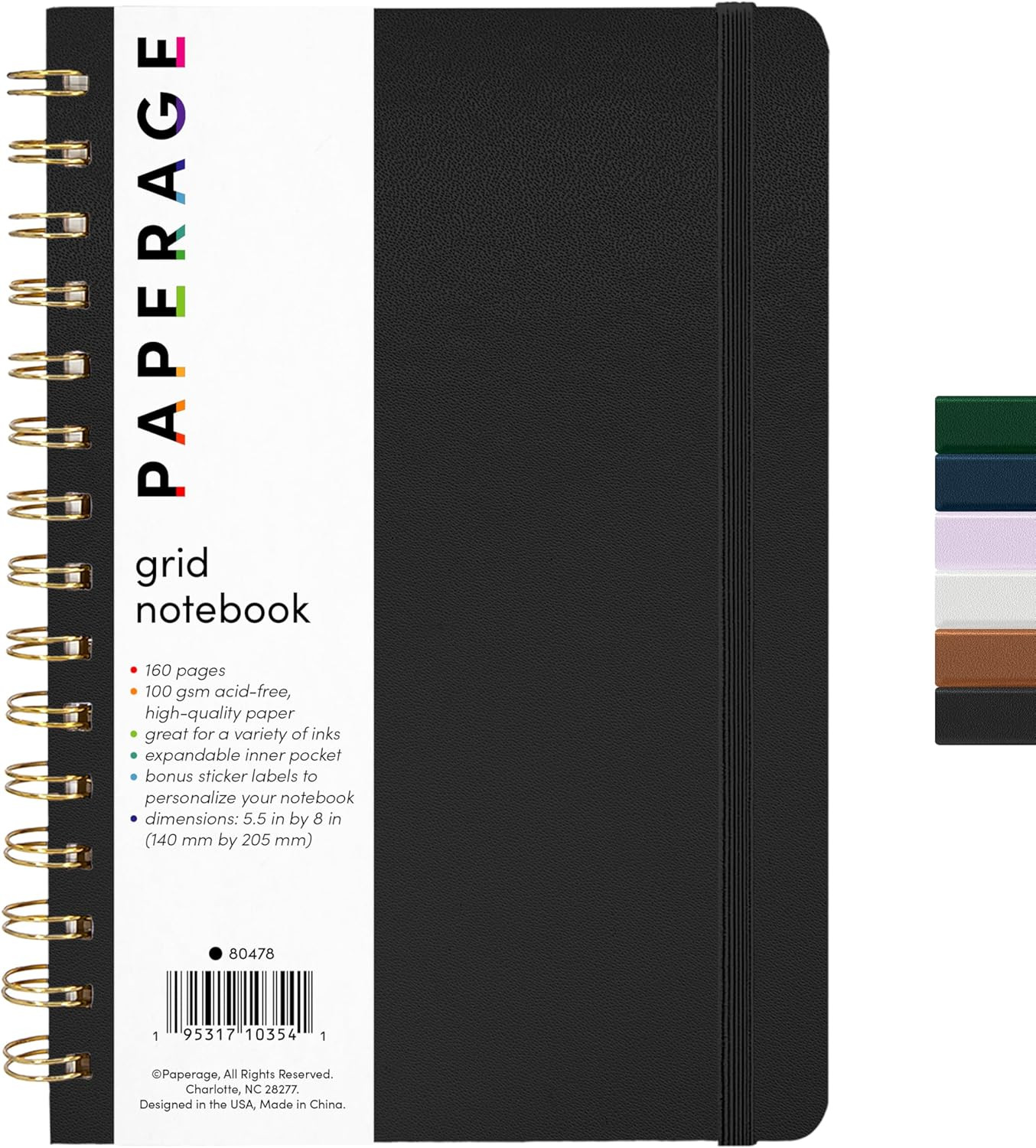 Graph Paper Spiral Notebook Journal, Black , 160 Pages, Medium 5.5 inches x 8