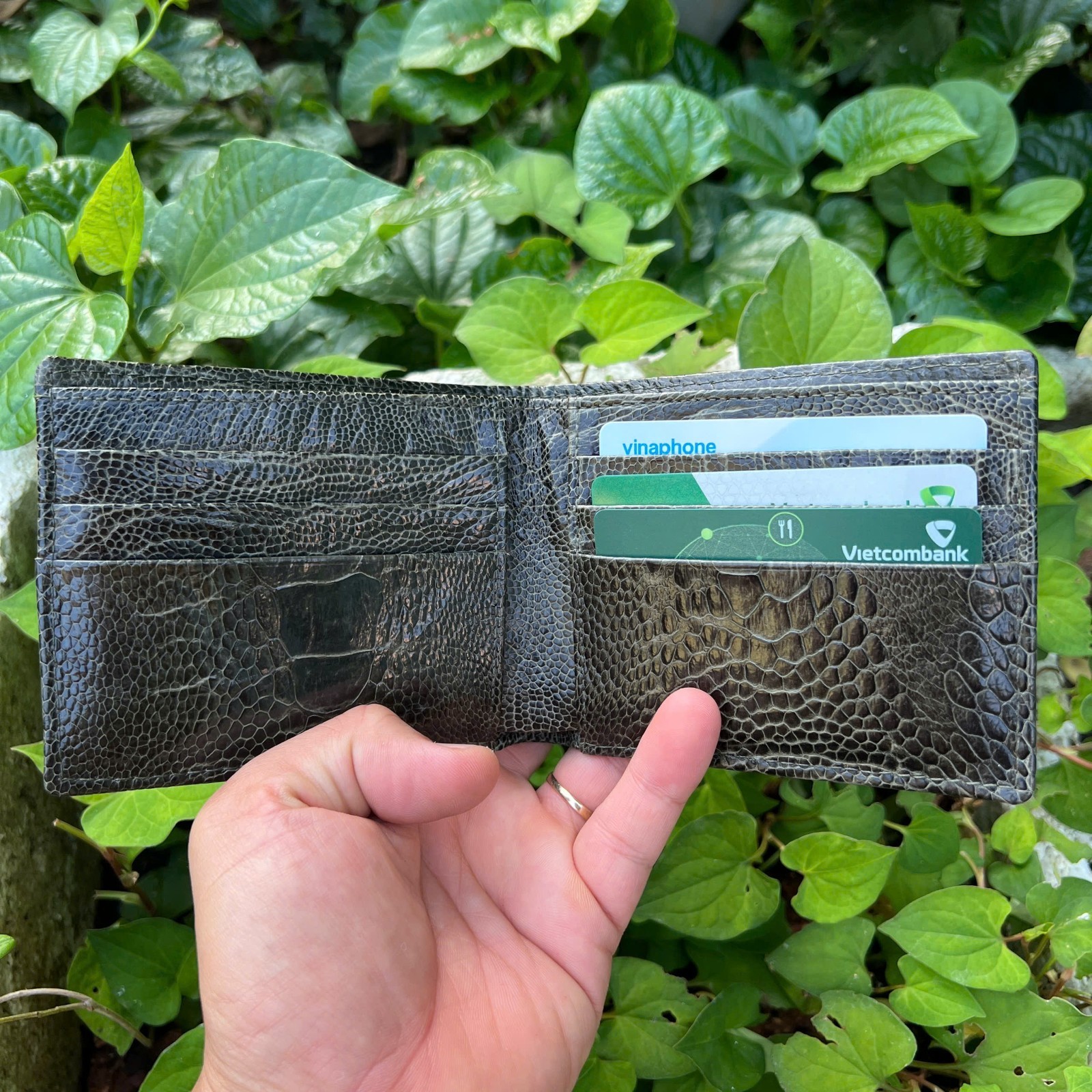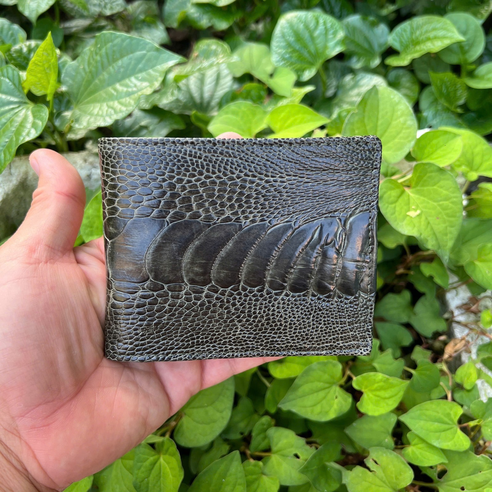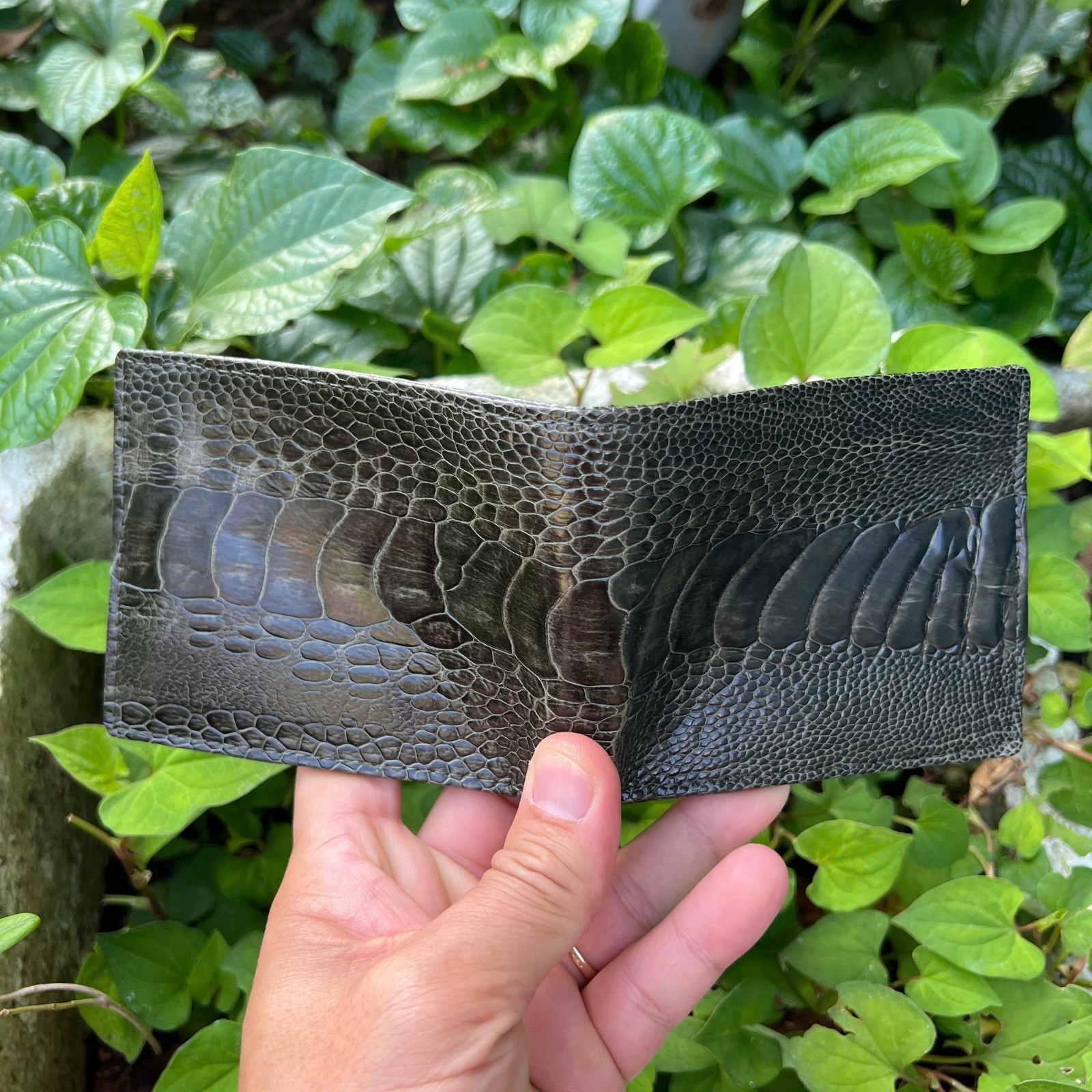 как выглядит Real GREEN OLIVE Ostrich Legs Leather Mens Bifold Wallet Card Money Clip, RFID фото