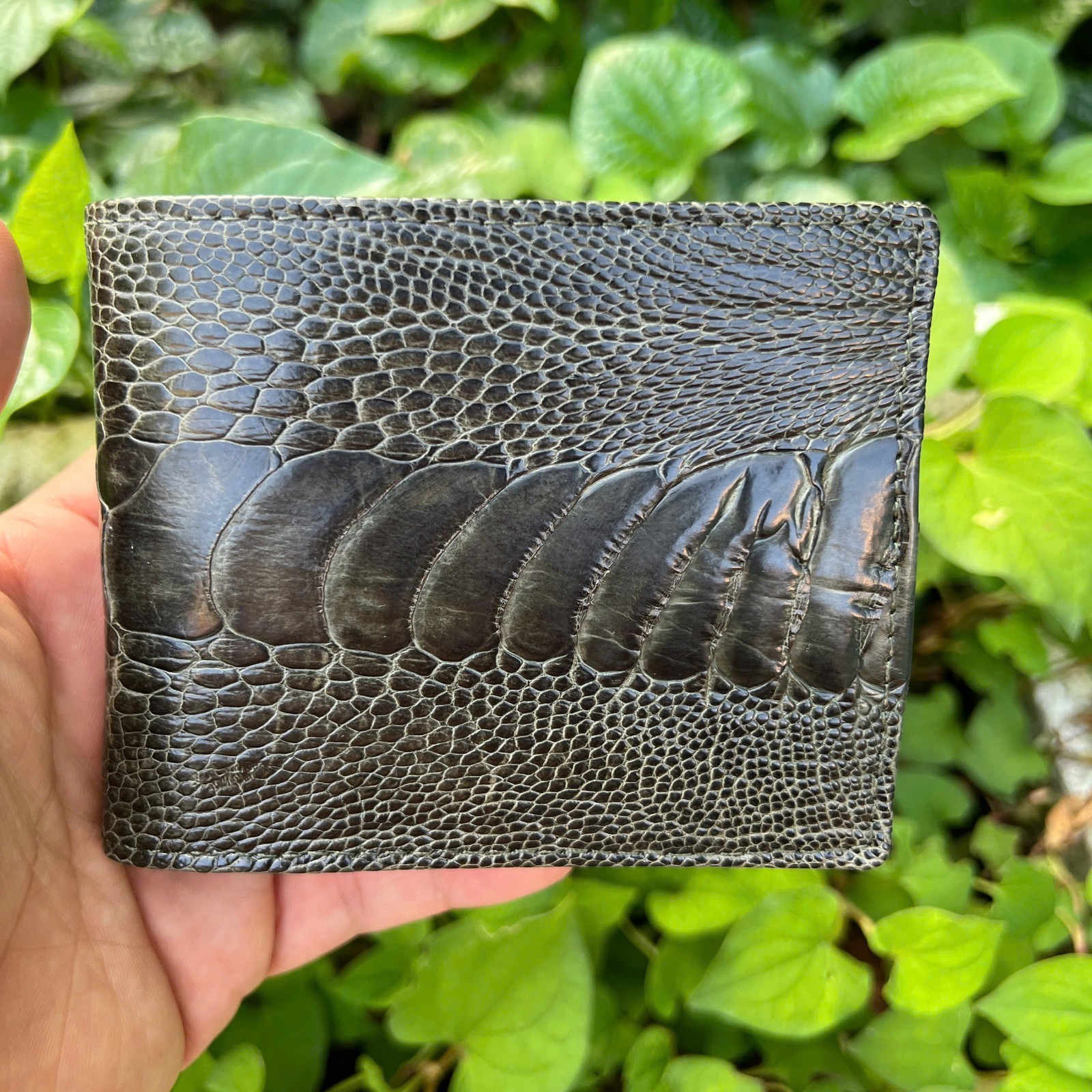 Real GREEN OLIVE Ostrich Leg's Leather Men's Bifold Wallet Card Money Clip, RFID