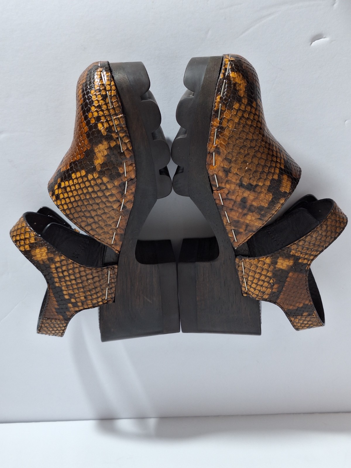 как выглядит NEW Tory Burch Lug Sole Platform Leather Clogs Snakeskin Print Sz 7M Festival фото