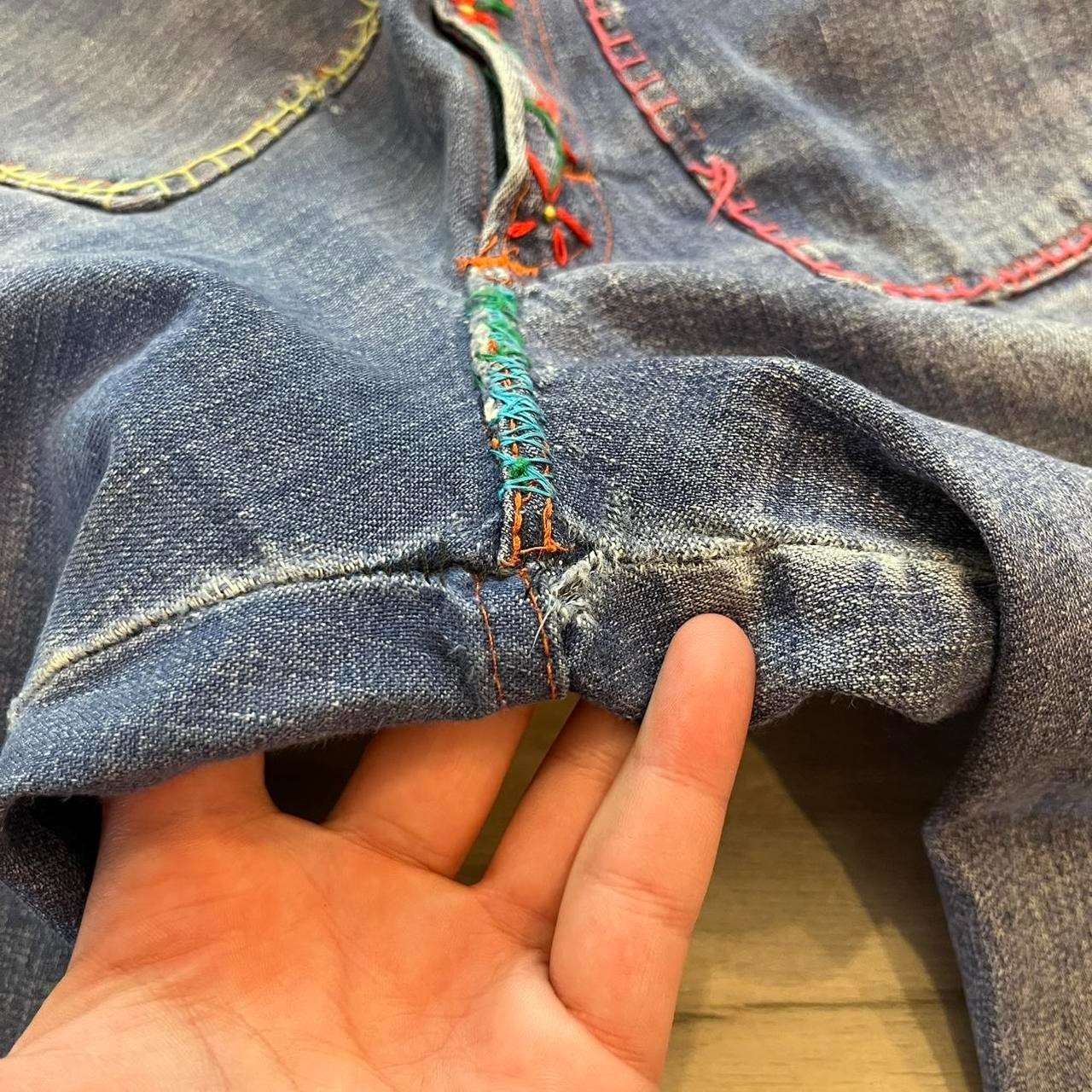 как выглядит Vintage 60s 70s Flared Hippie Bell Bottom Jeans Embroidered Denim Talon Zipper фото