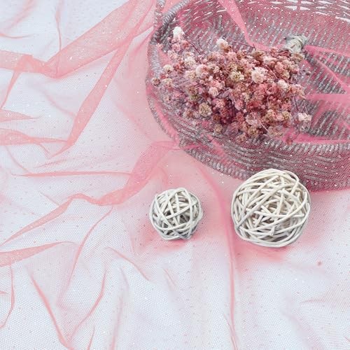 Glitter Tulle Fabric x 60 Inch Wide Tulle Bolt Tulle Netting with 1 Yard Pink