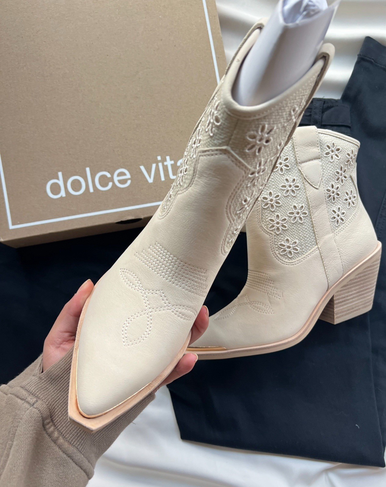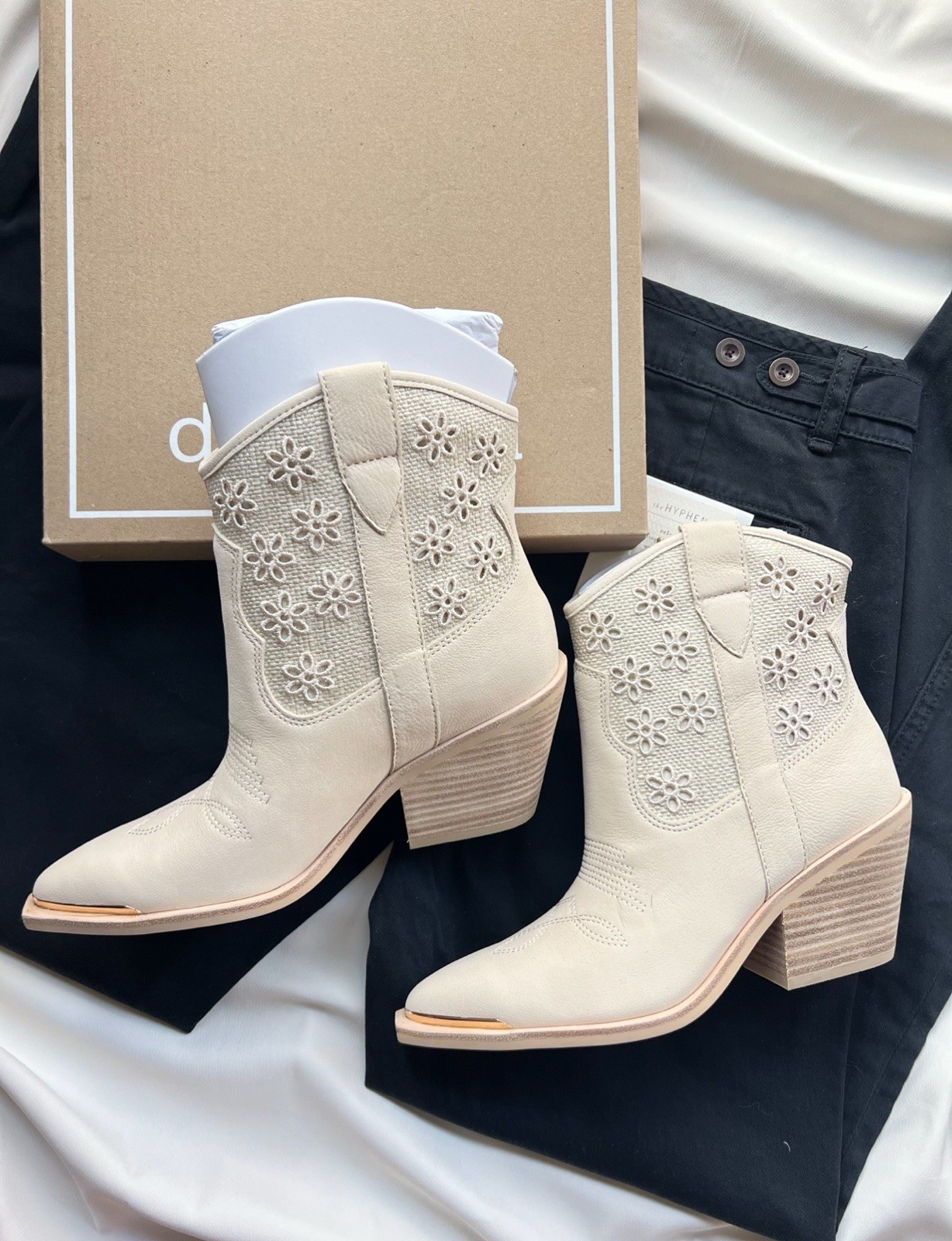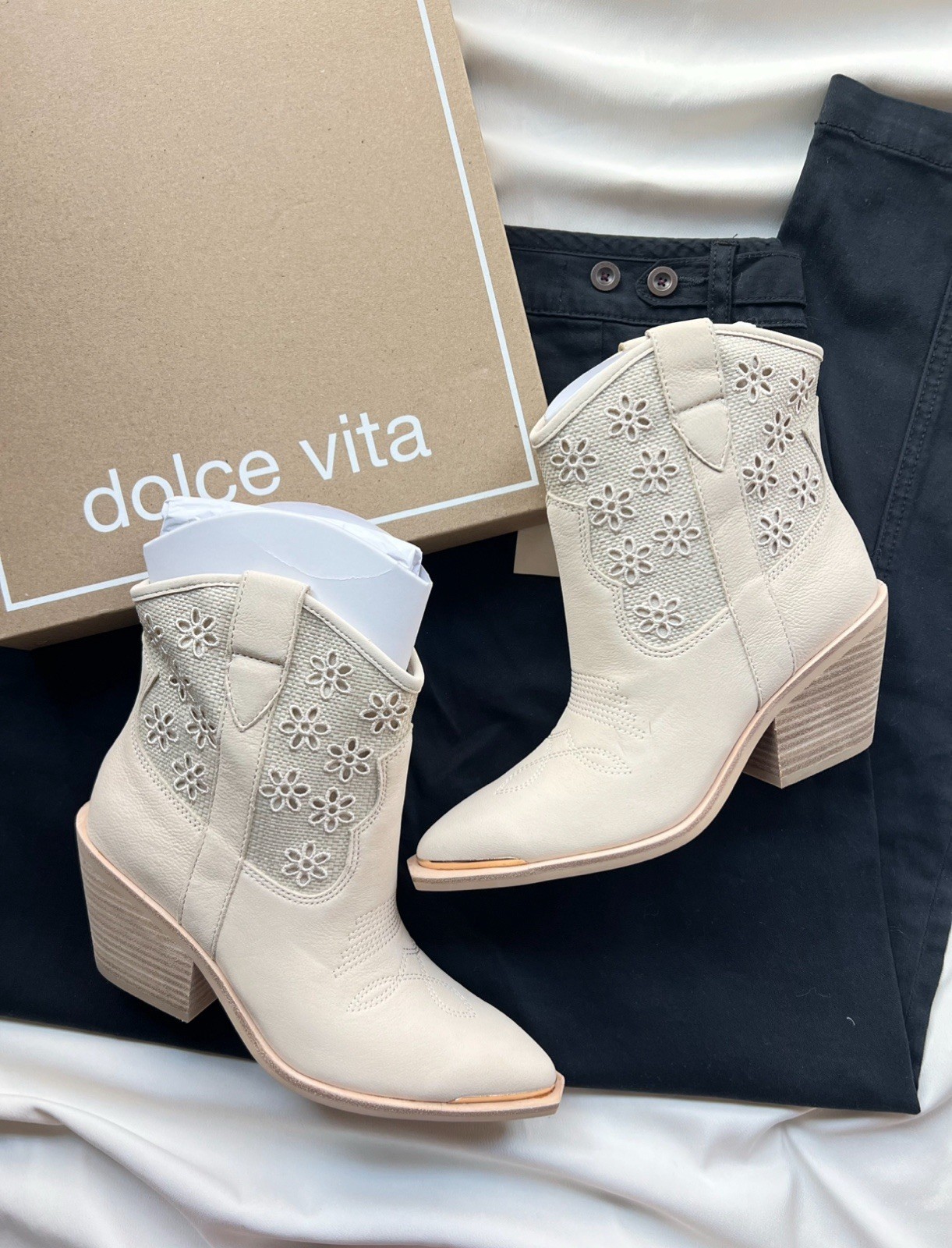 как выглядит NWB Dolce Vita Nashe Oatmeal Floral Eyelet Ankle Boot фото