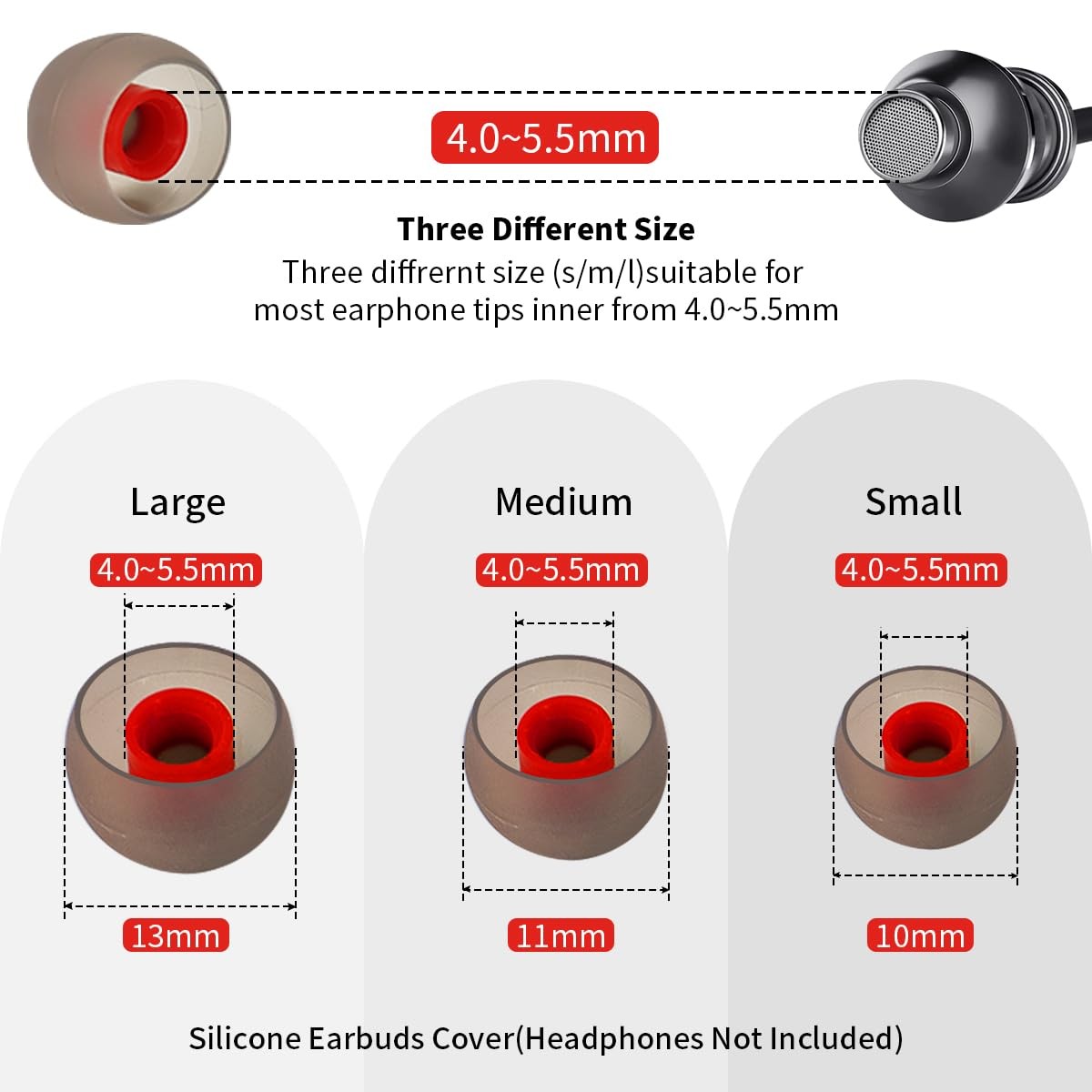 60PCS Earbuds Replacement Tips Silicone, Ear Bud Replacement Pieces Silicone