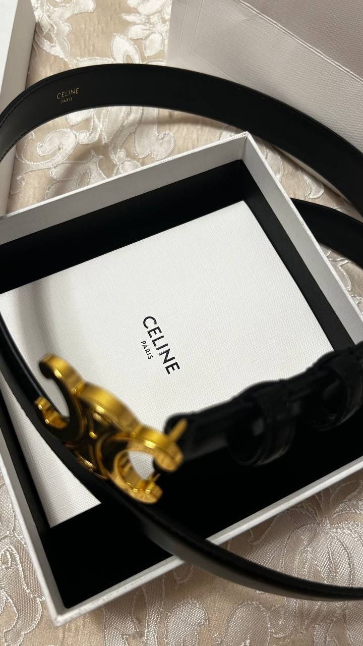 как выглядит Authentic Celine Triomphe Leather Black Gold Womens Belt фото