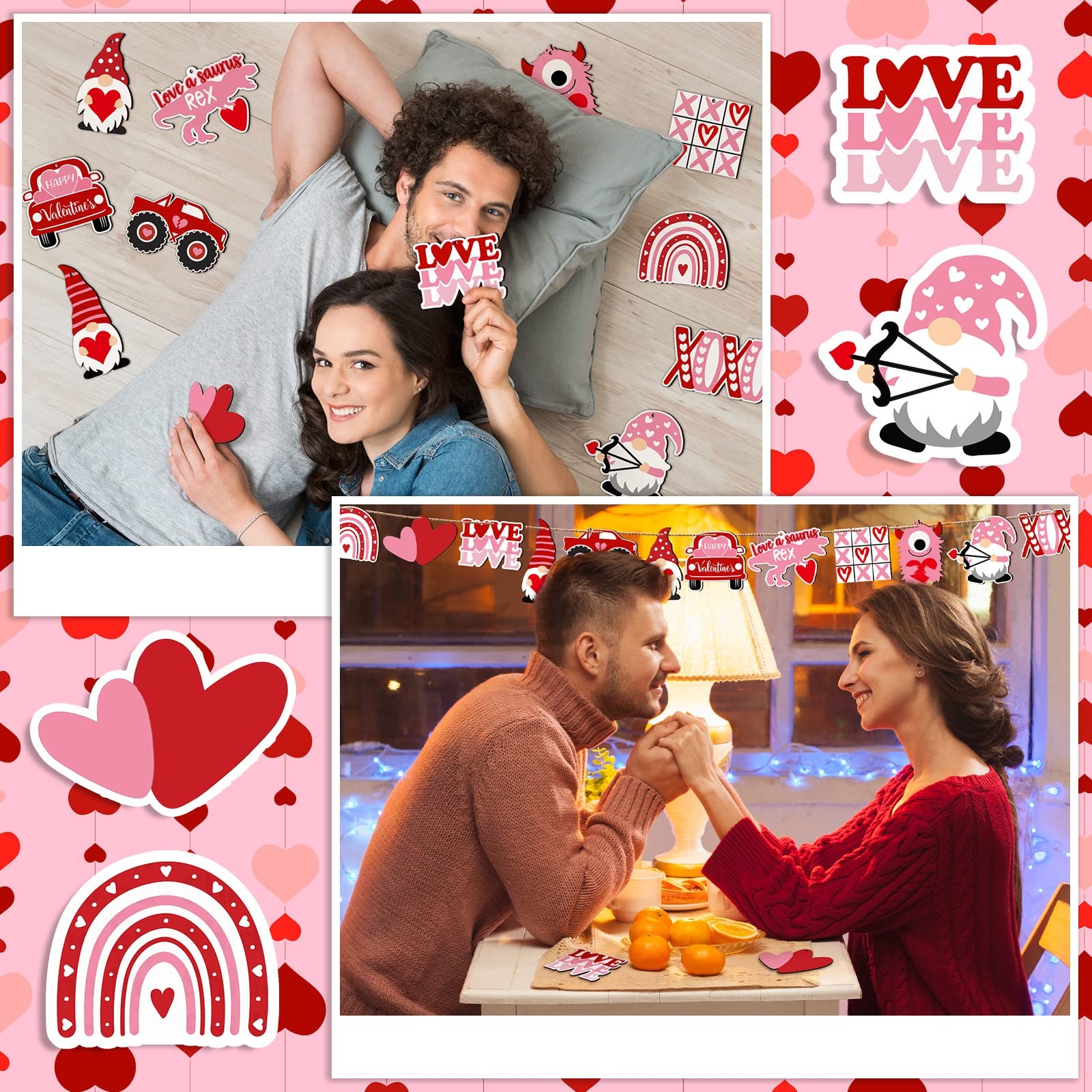 • Chunful 36 Pcs Valentine Day Wooden Ornaments Red Tree Truck Style