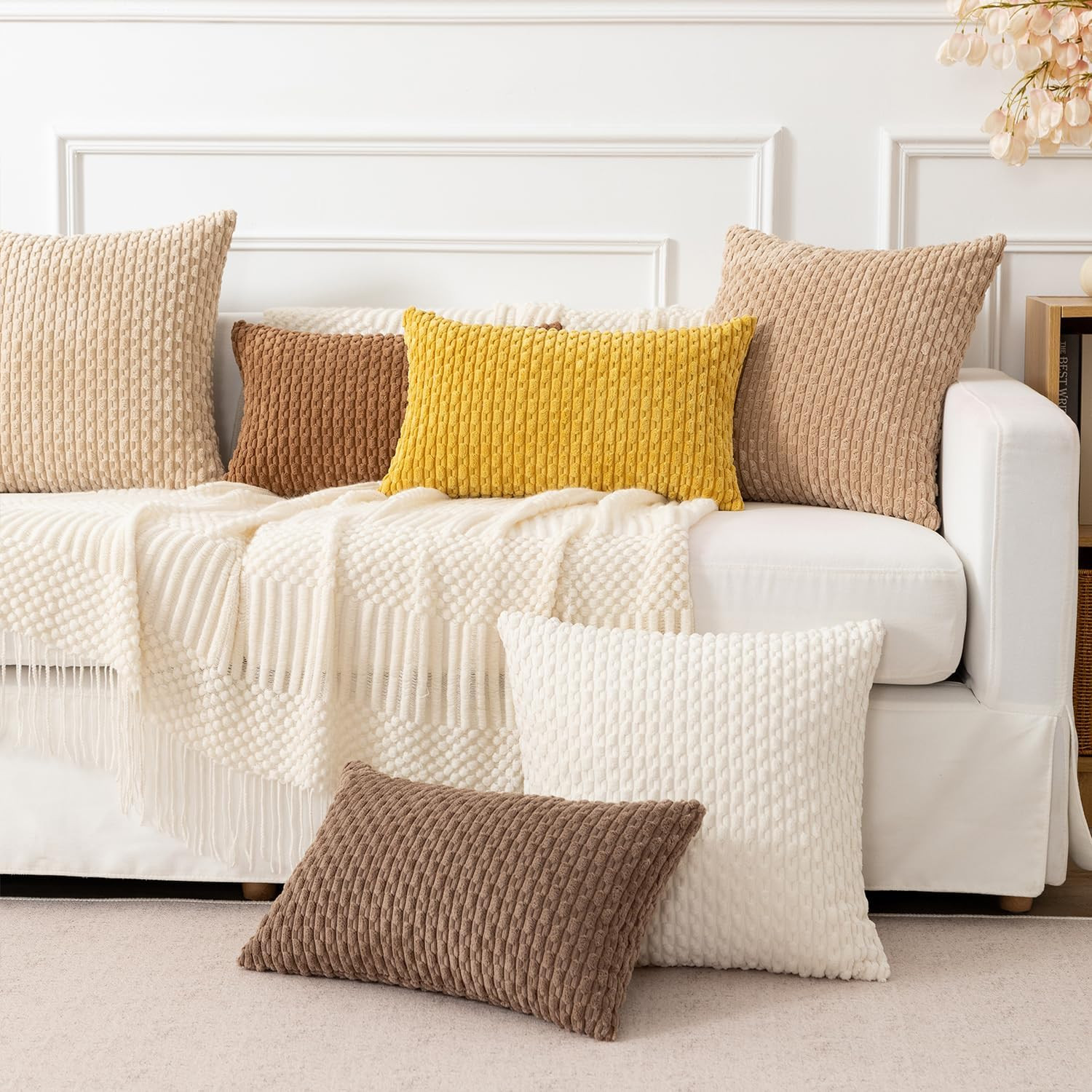 Throw Pillow Covers Soft Corduroy Decorative Set of 2 Boho Striped Pillow Covers