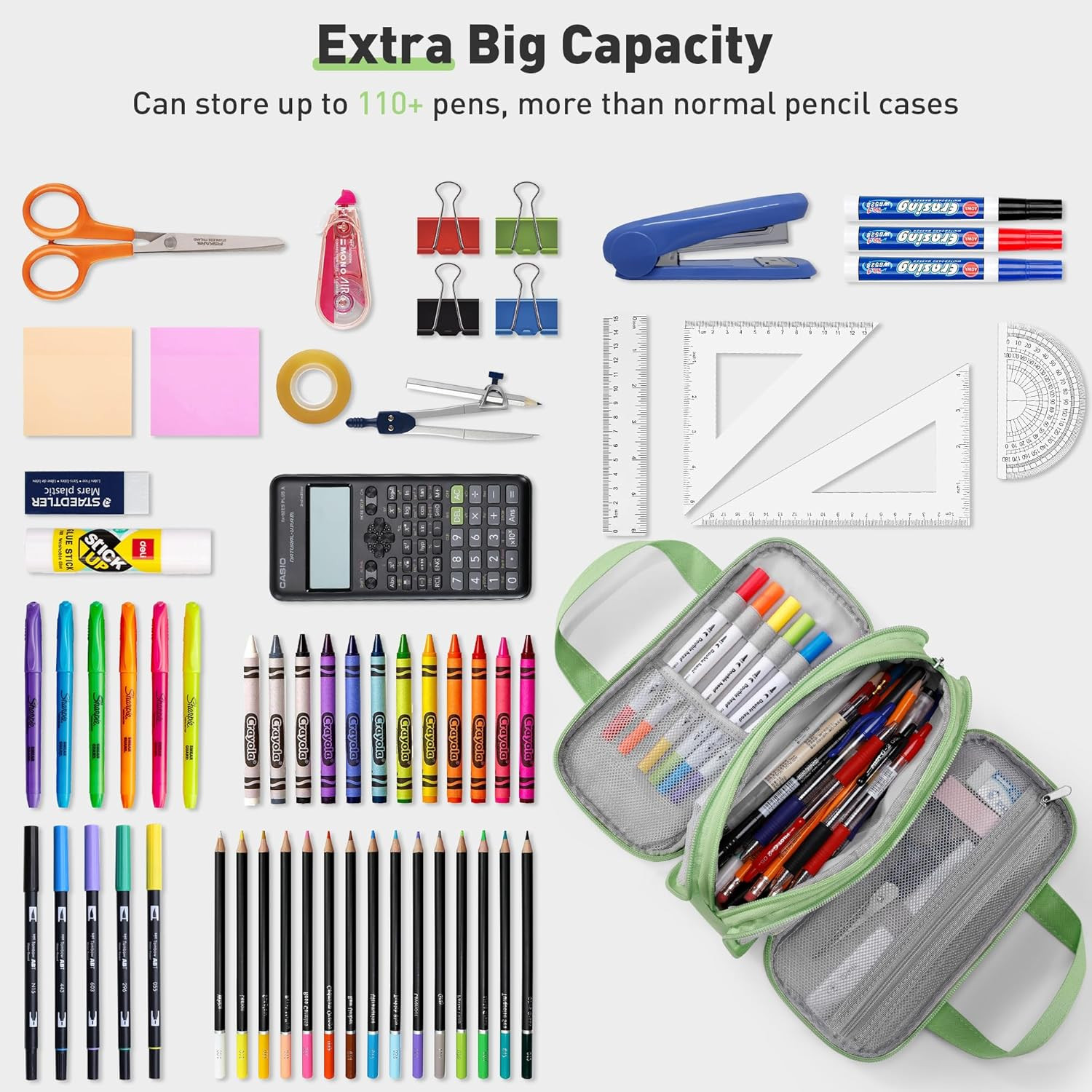 Large Pencil Case, Big Capacity Pencil Pouch Pen Bag with 3 Compartment, Portabl
