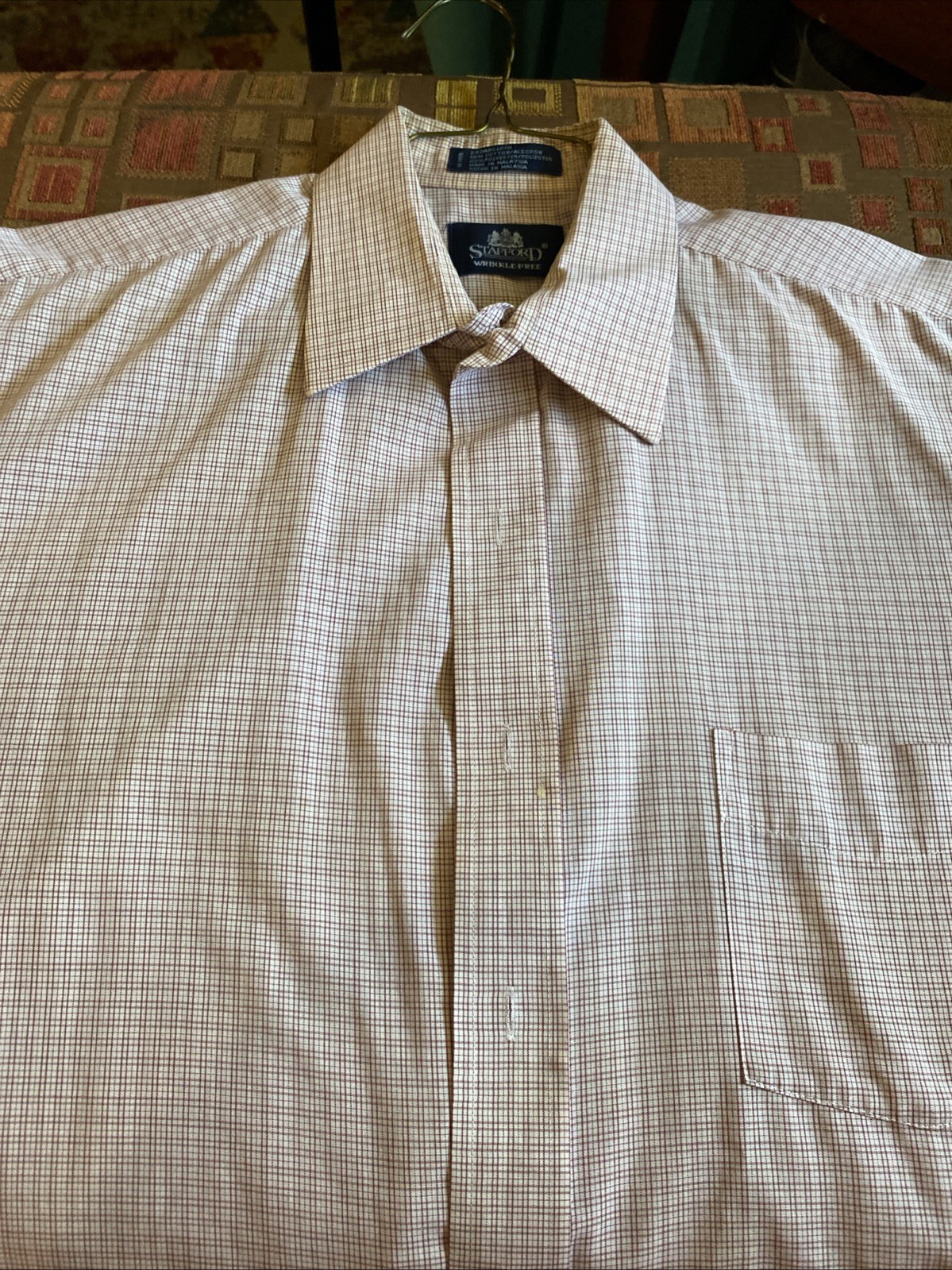 как выглядит Stafford Wrinkle Free Short Sleeve Mens Shirt Red/white Plaid фото