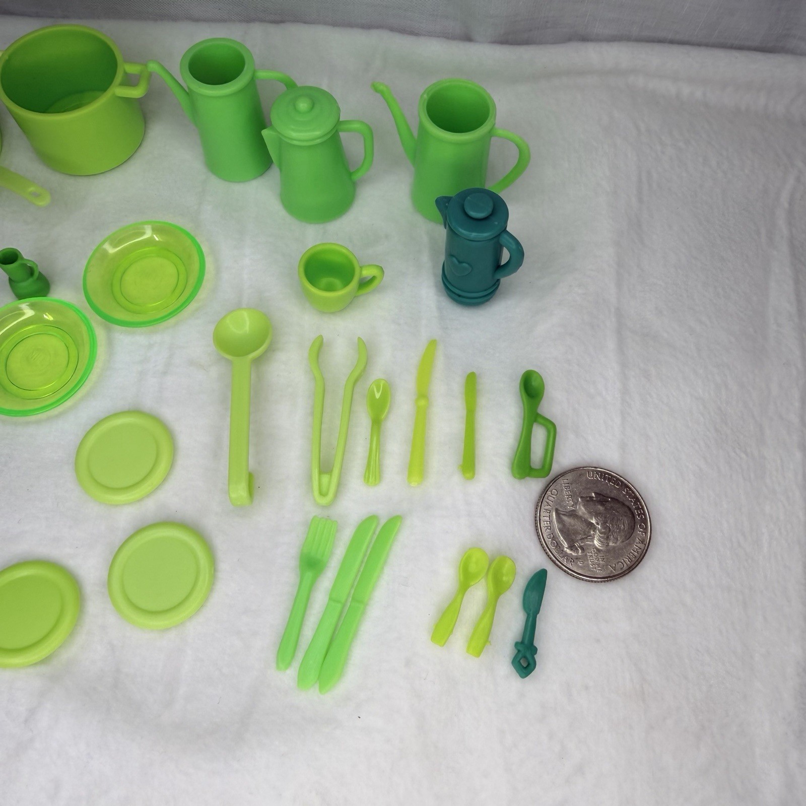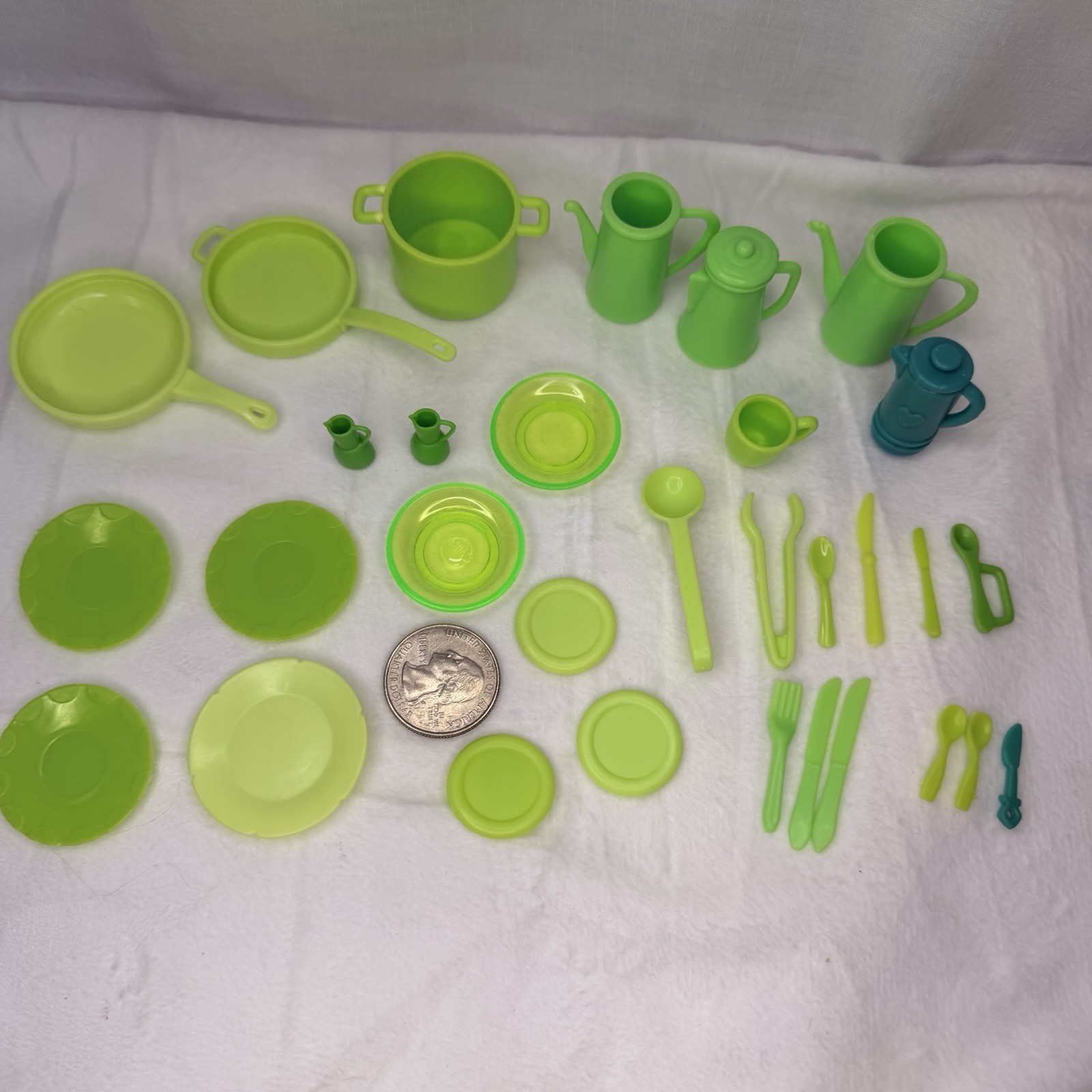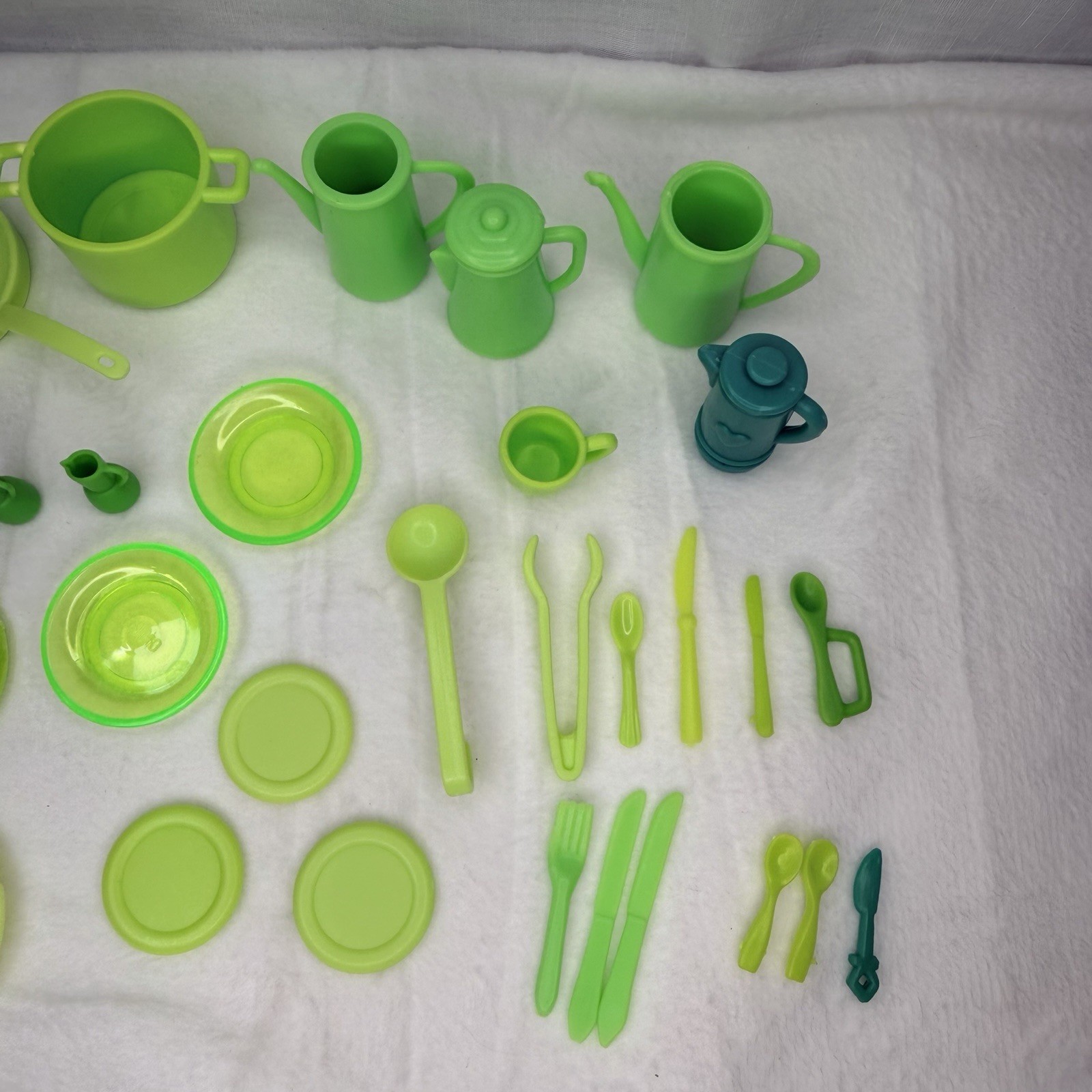 Huge Bundle Barbie Doll Kitchen Accessories Green Dishes Pans Pots Utensils J2i