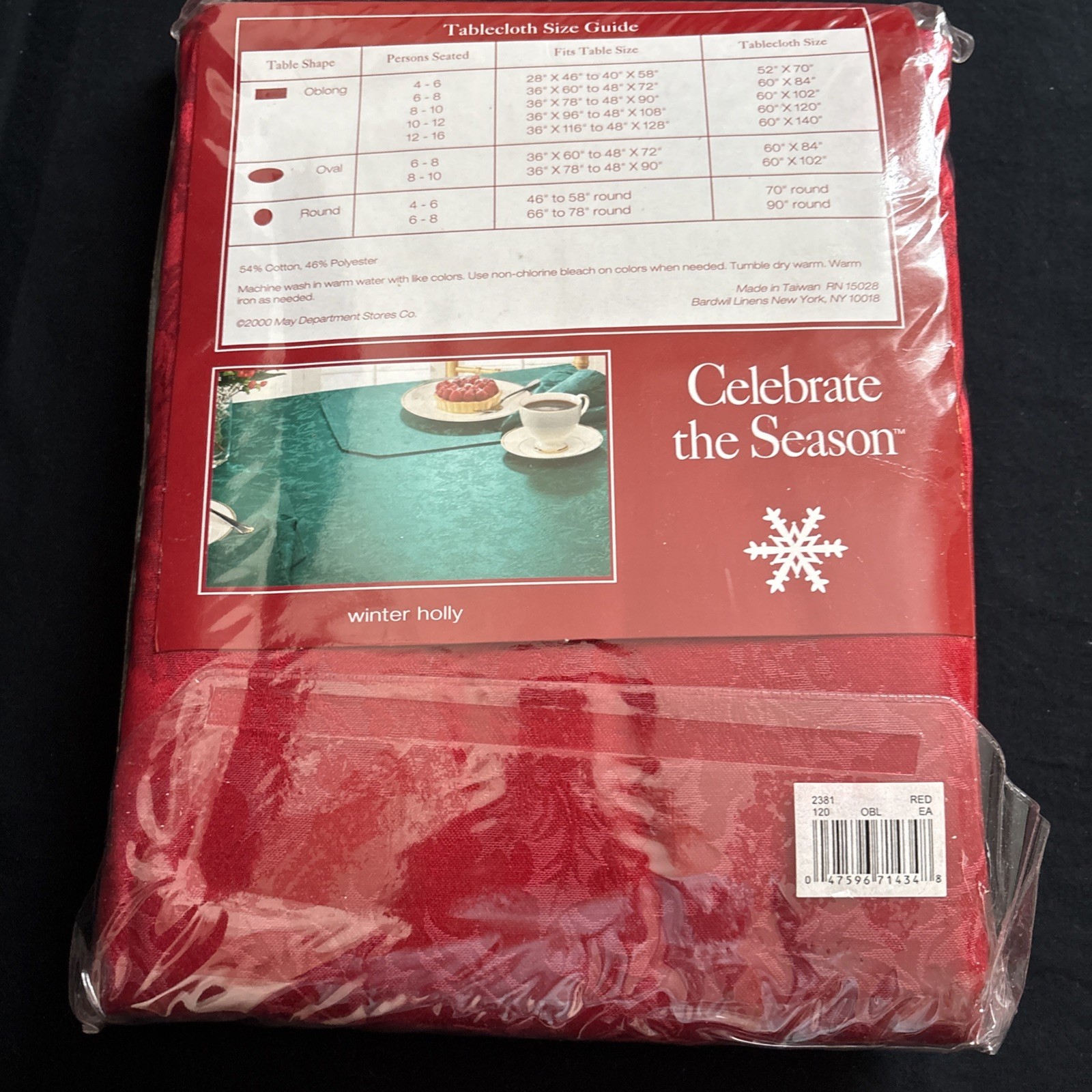 Celebrate The Season Christmas Tablecloth Winter Holly Red Banquet 60 x 120