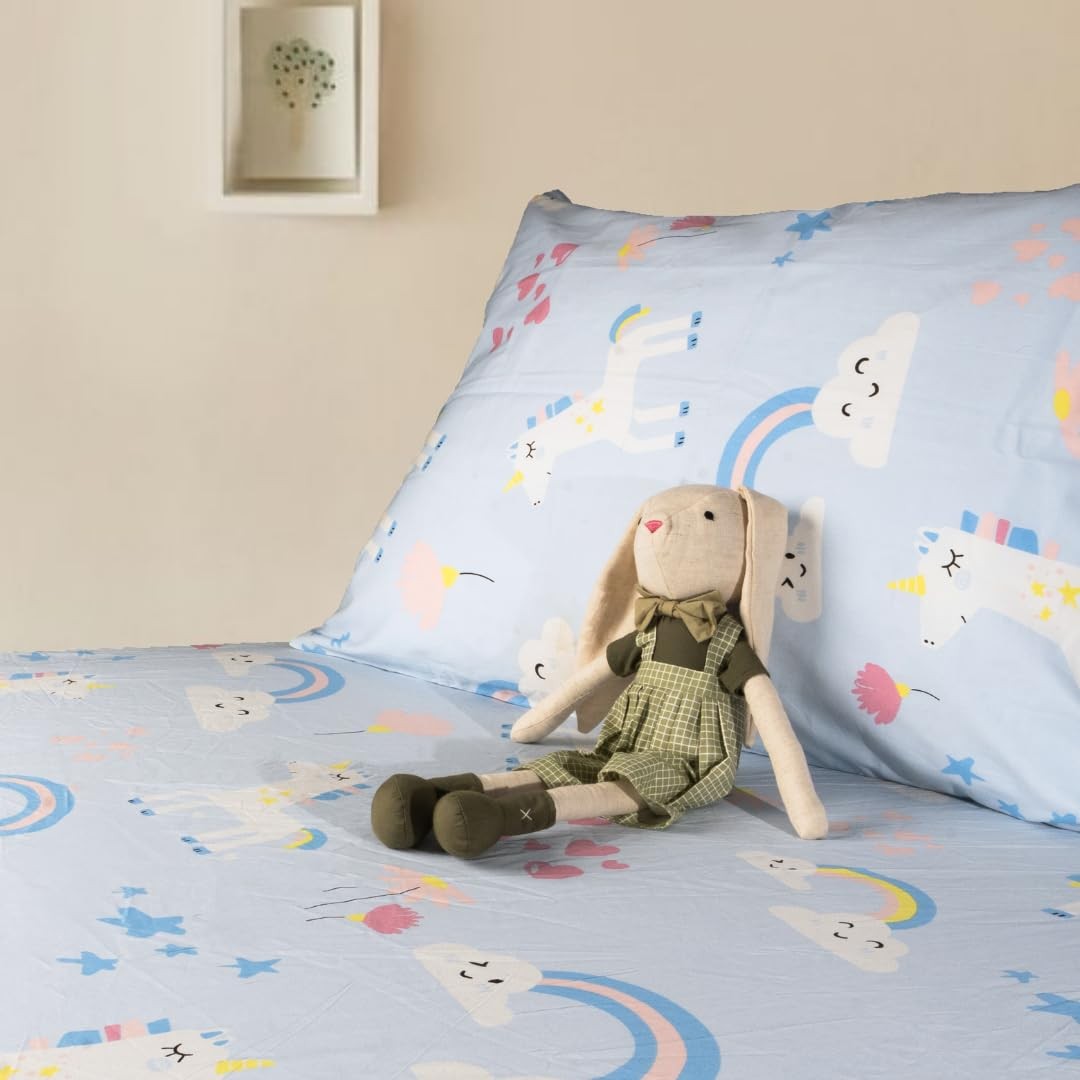 100 Cotton 210TC Kids Bedsheet, Twin Fitted Sheet, Toddler Bed, 4-Piece Set ...