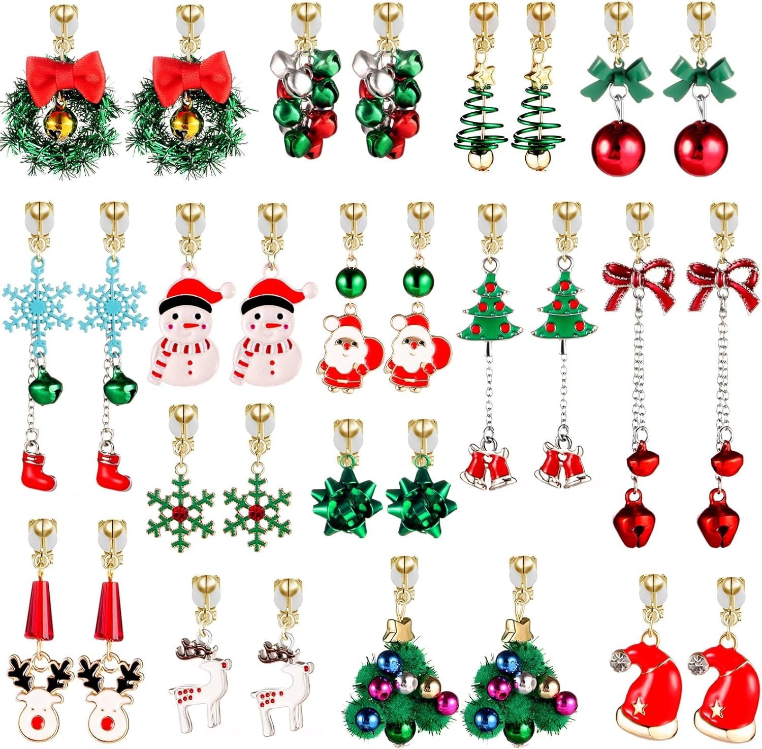 Women s 15-Pair Clip-On Earrings Set - Festive Gold Jewelry for the Holidays