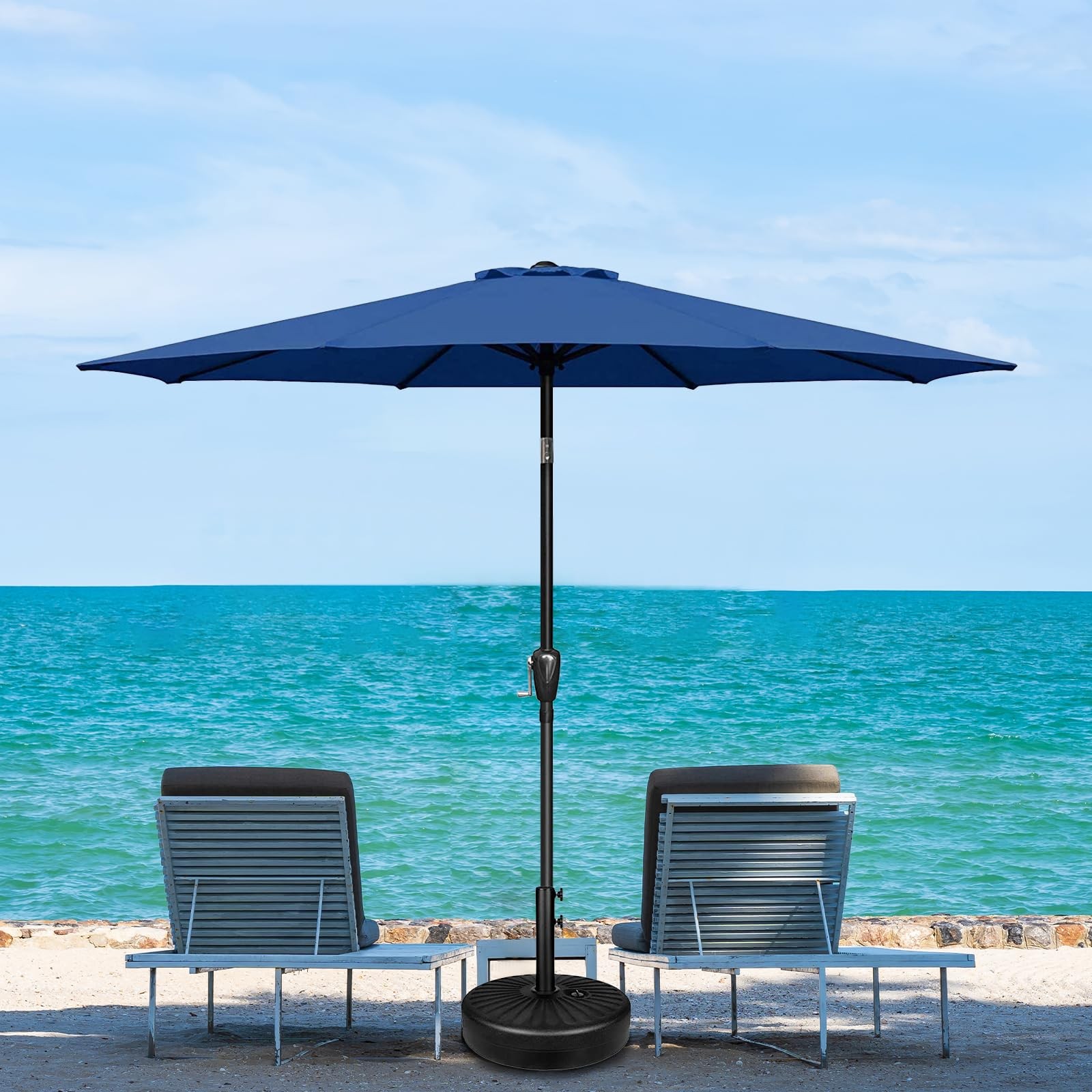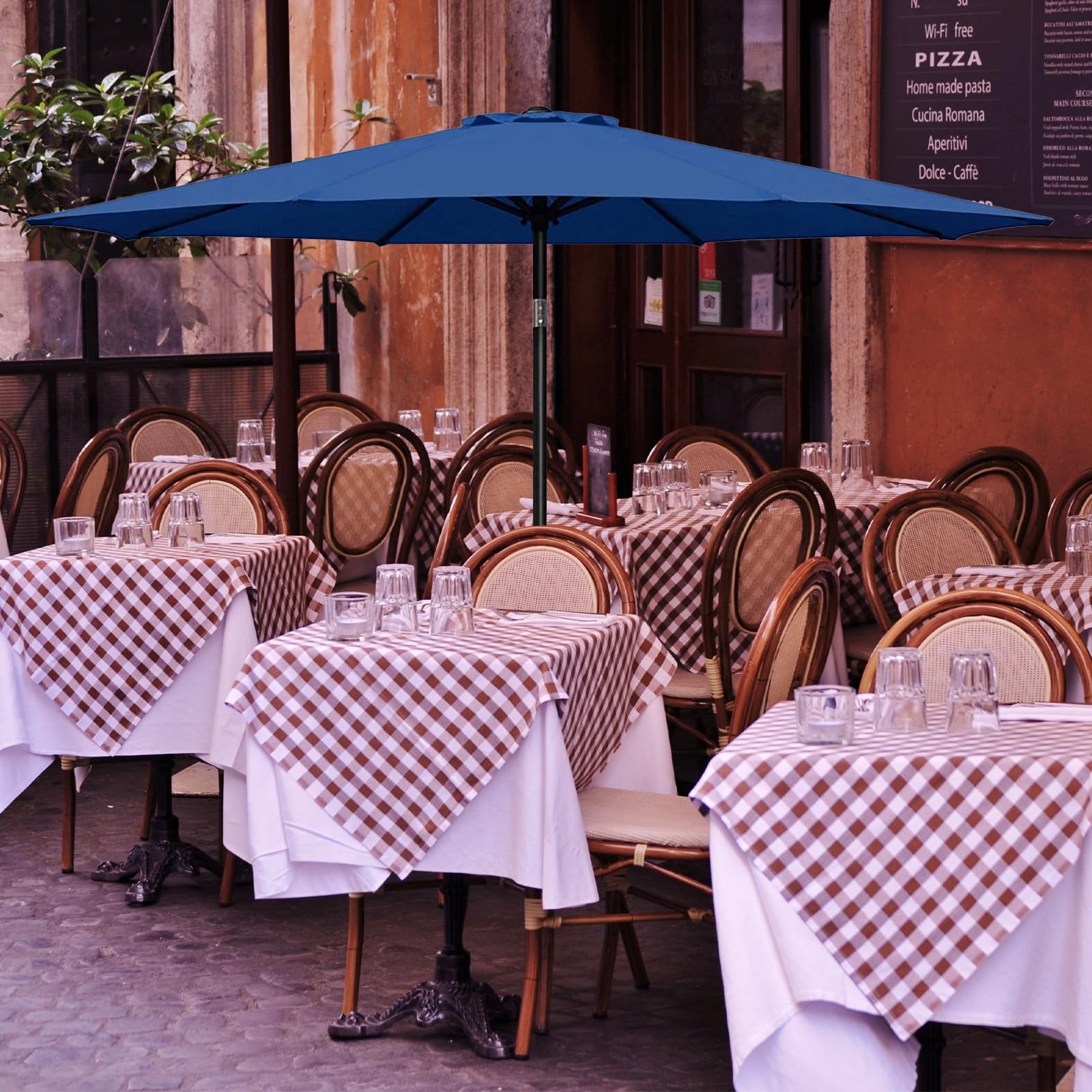 9' Patio Umbrella Outdoor Table Market Yard Umbrella with 8 Sturdy Ribs, Blue