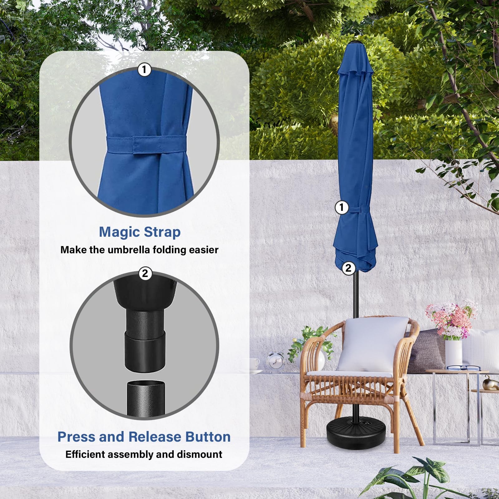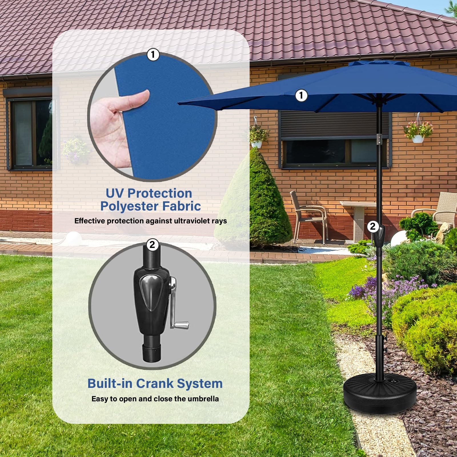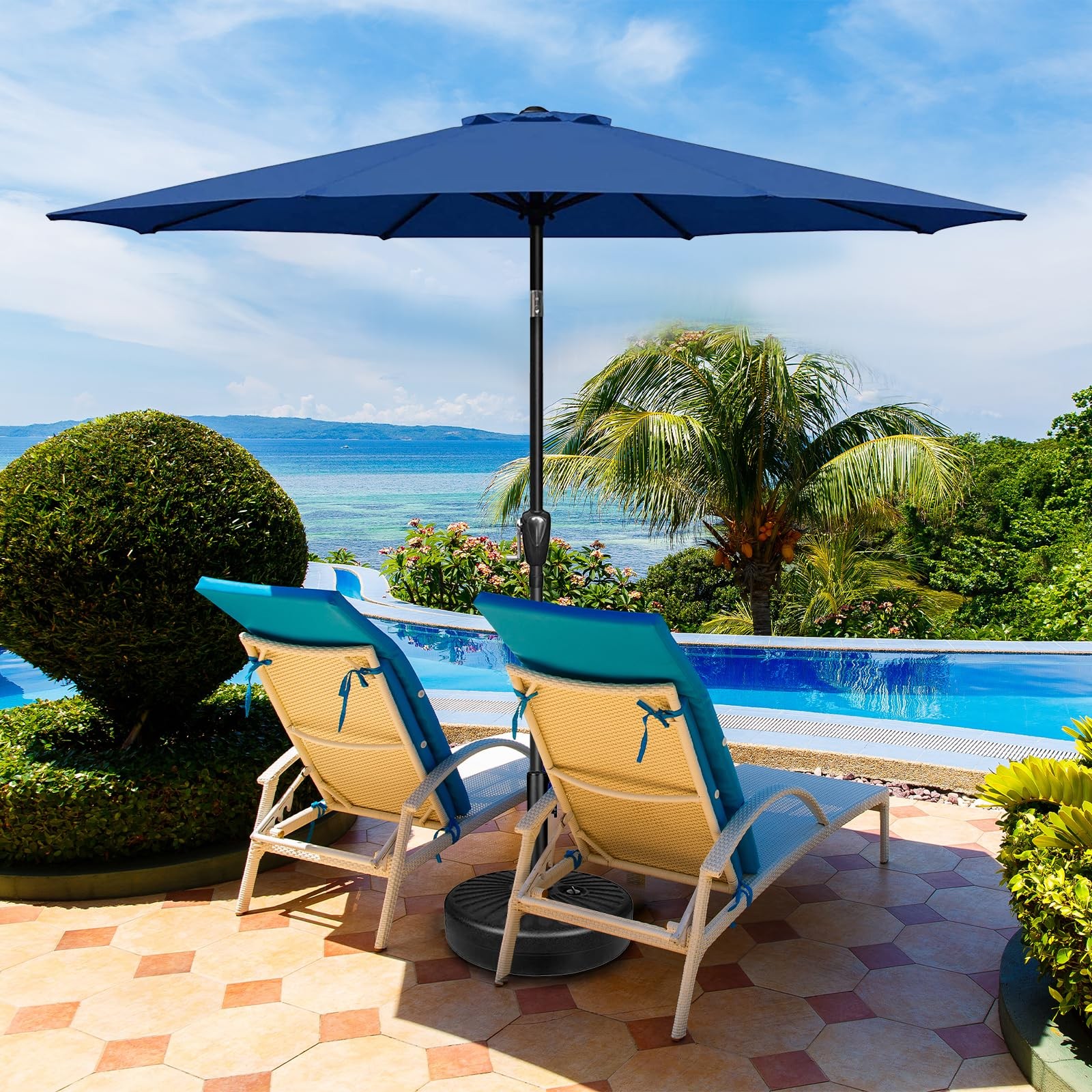 как выглядит 9 Patio Umbrella Outdoor Table Market Yard Umbrella with 8 Sturdy Ribs, Blue фото