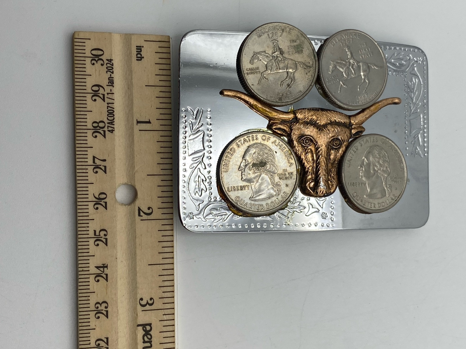 Belt Buckle Cowboy/Texas Longhorn Quarters Silver Tone