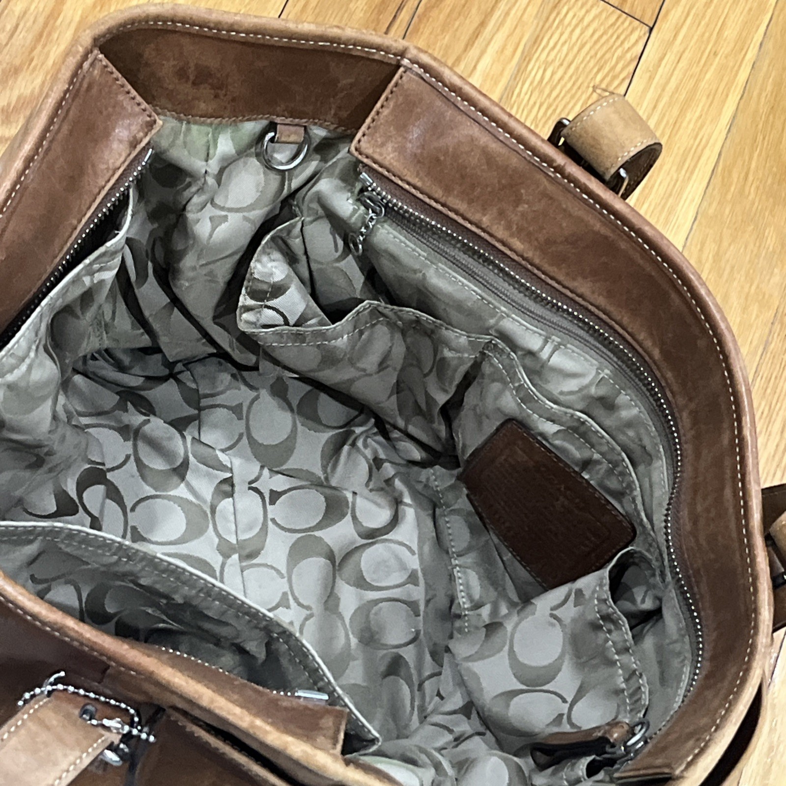 как выглядит Vintage Coach Brown Leather 6460 Purse Diaper Bag Zip Top Double Buckle Straps фото