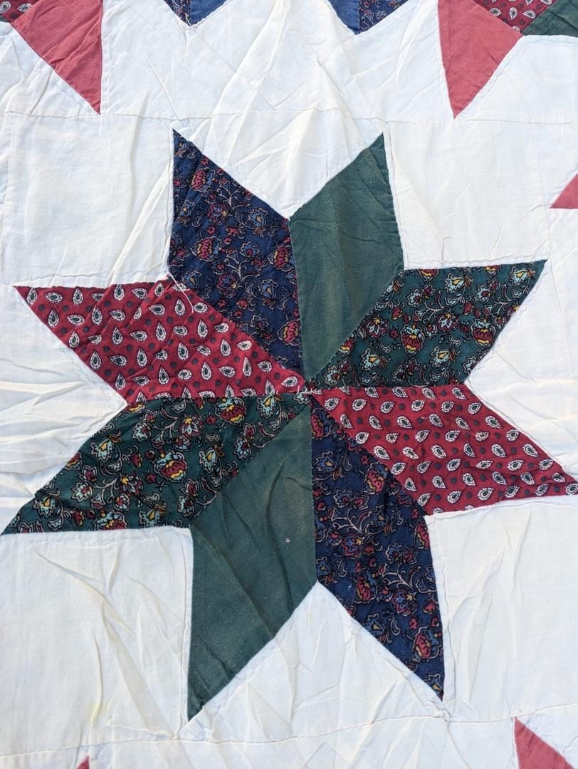 • Vintage Beautiful Quilt Different Pieces Hand Woven size 80x72 inches