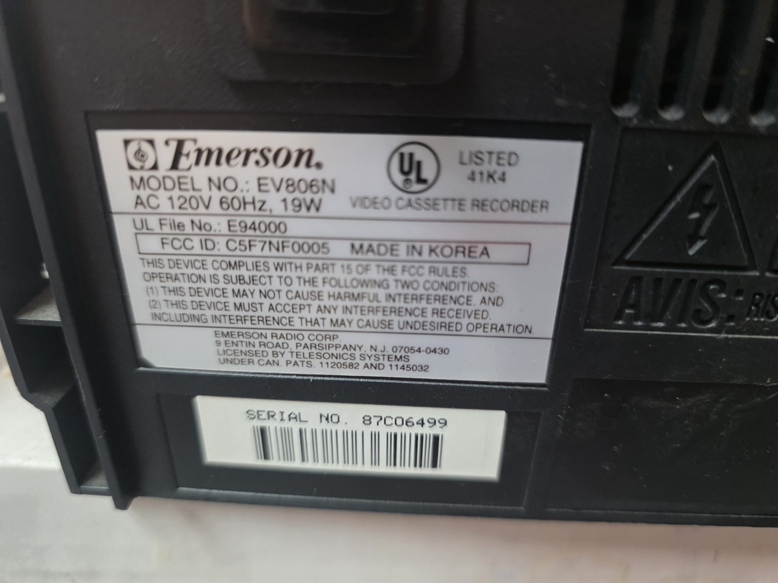 Emerson 4 Head Hi-fi Stereo VCR Model EV806N Tested And Works