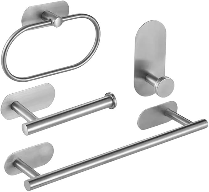 4 Pcs Bathroom Hardware Set Stainless Steel Towel Bar Towel Racks adhesive Hooks