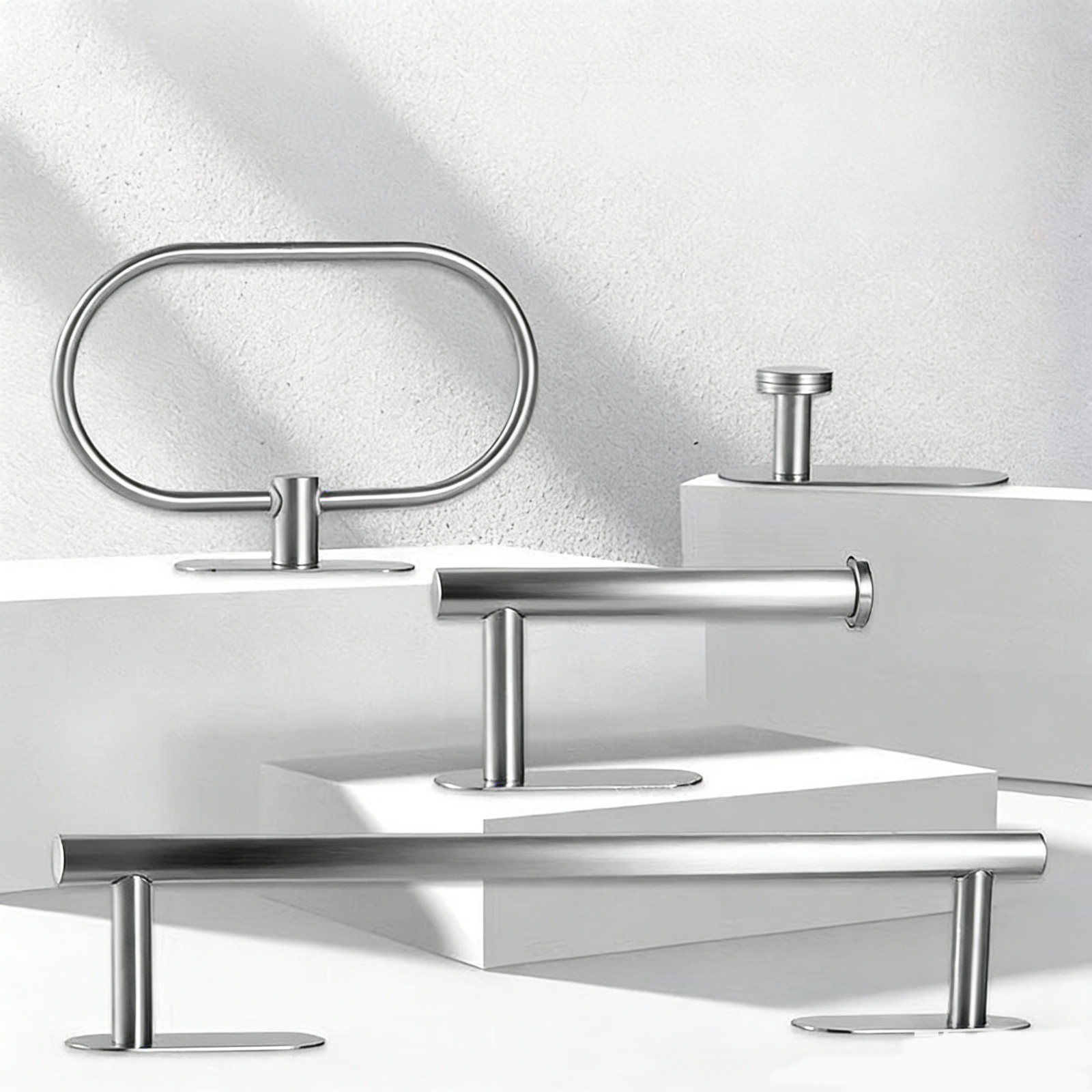 как выглядит 4 Pcs Bathroom Hardware Set Stainless Steel Towel Bar Towel Racks adhesive Hooks фото