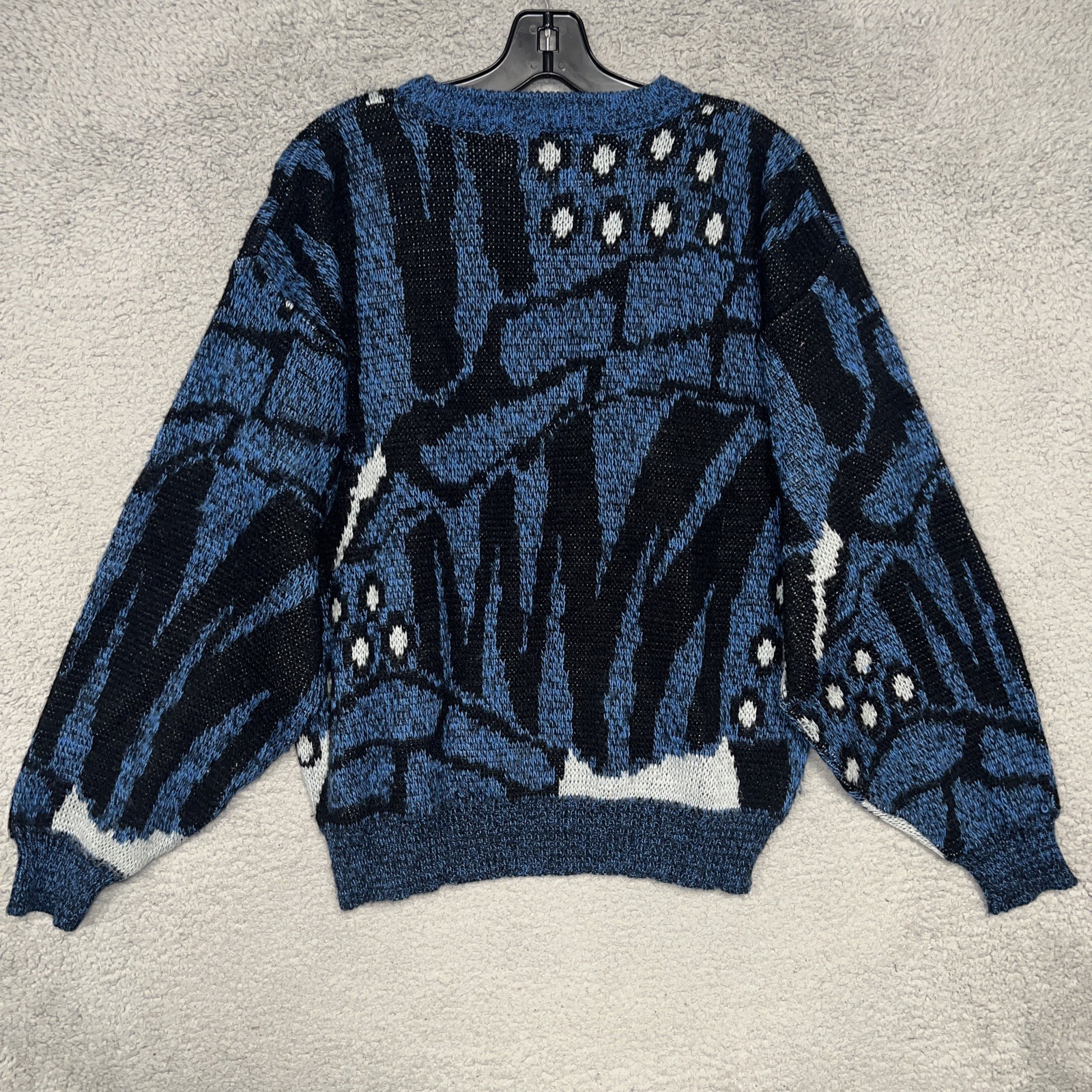 как выглядит VTG Saturdays Sweater Mens Sz M Blue Geometric Funky Knit Pullover Cosby 90s фото