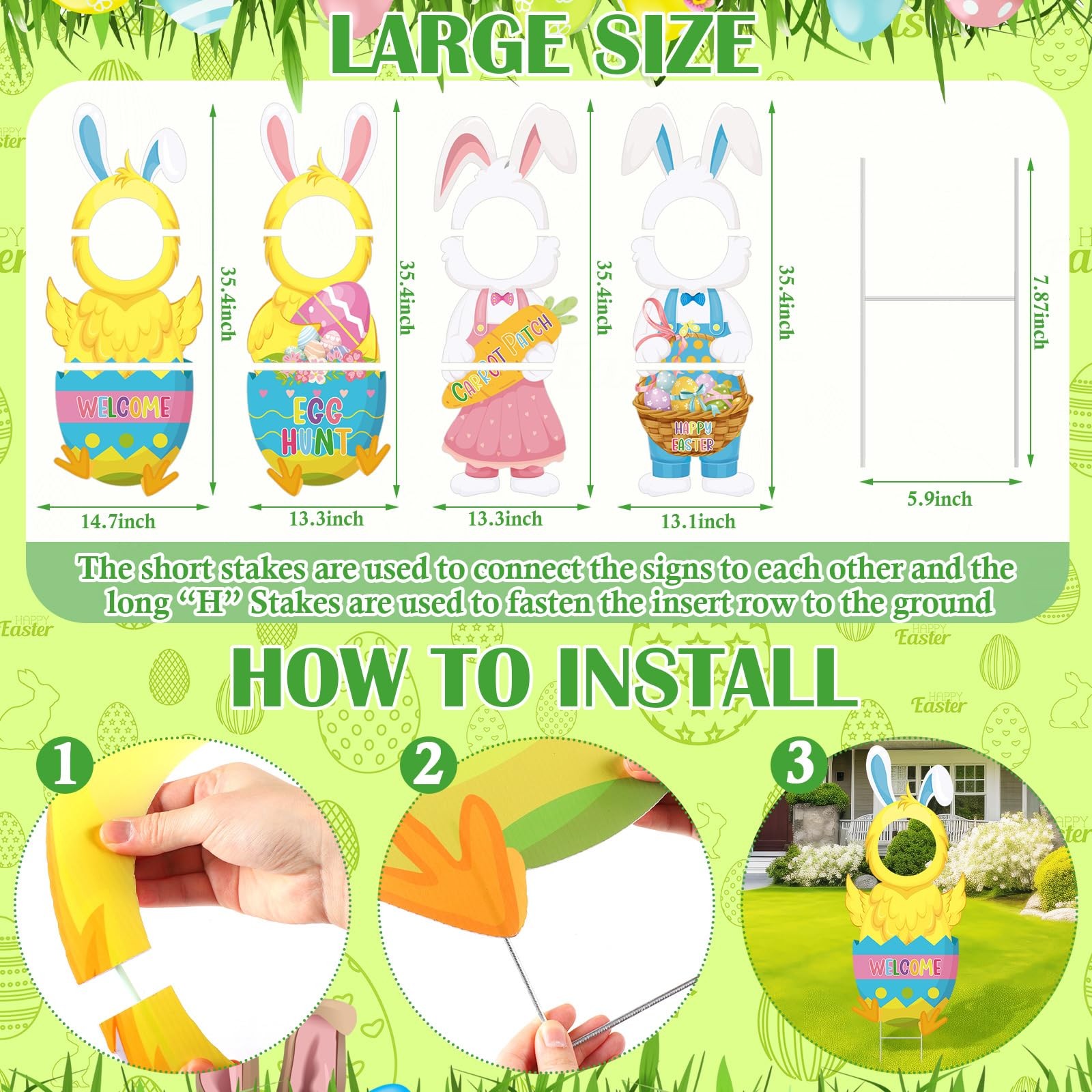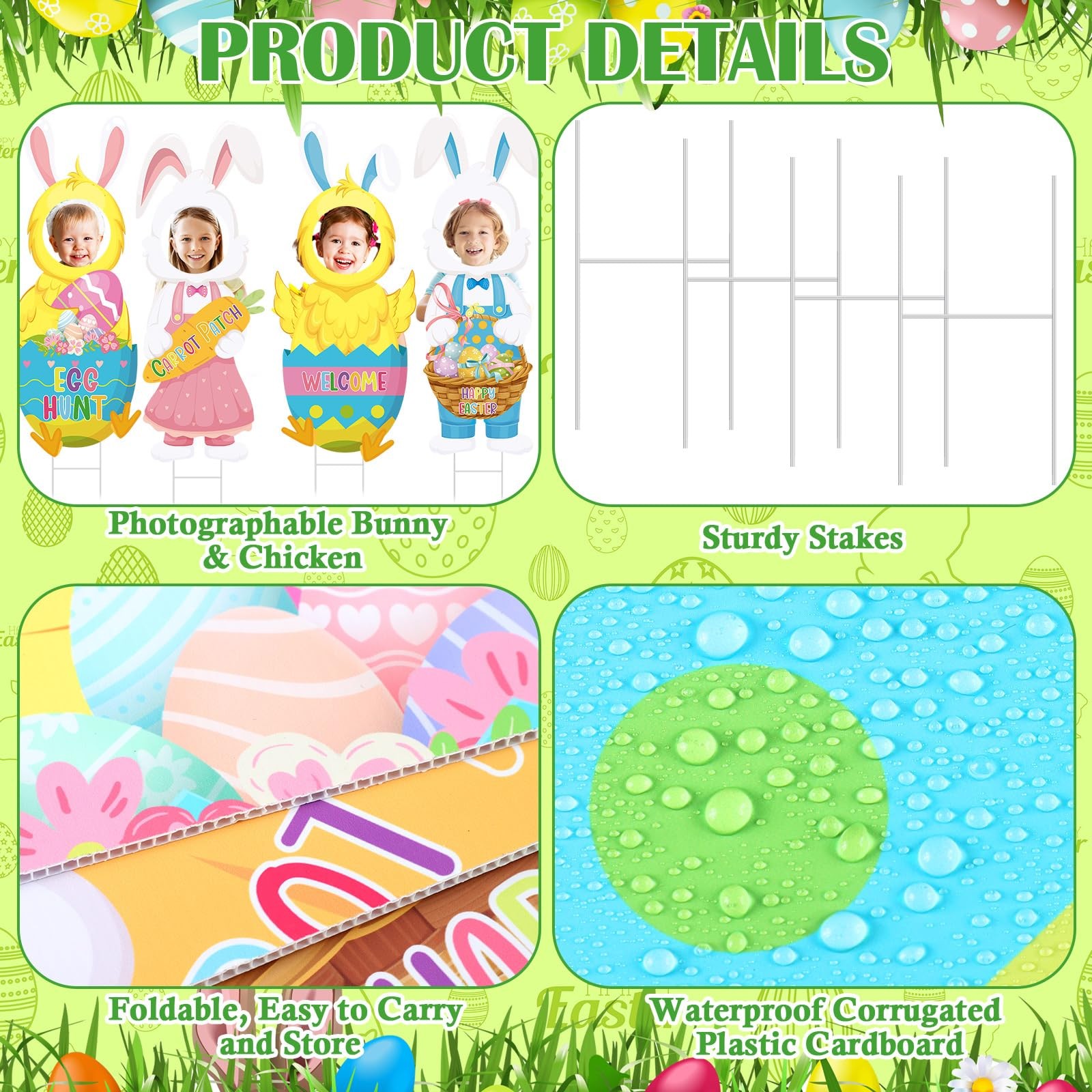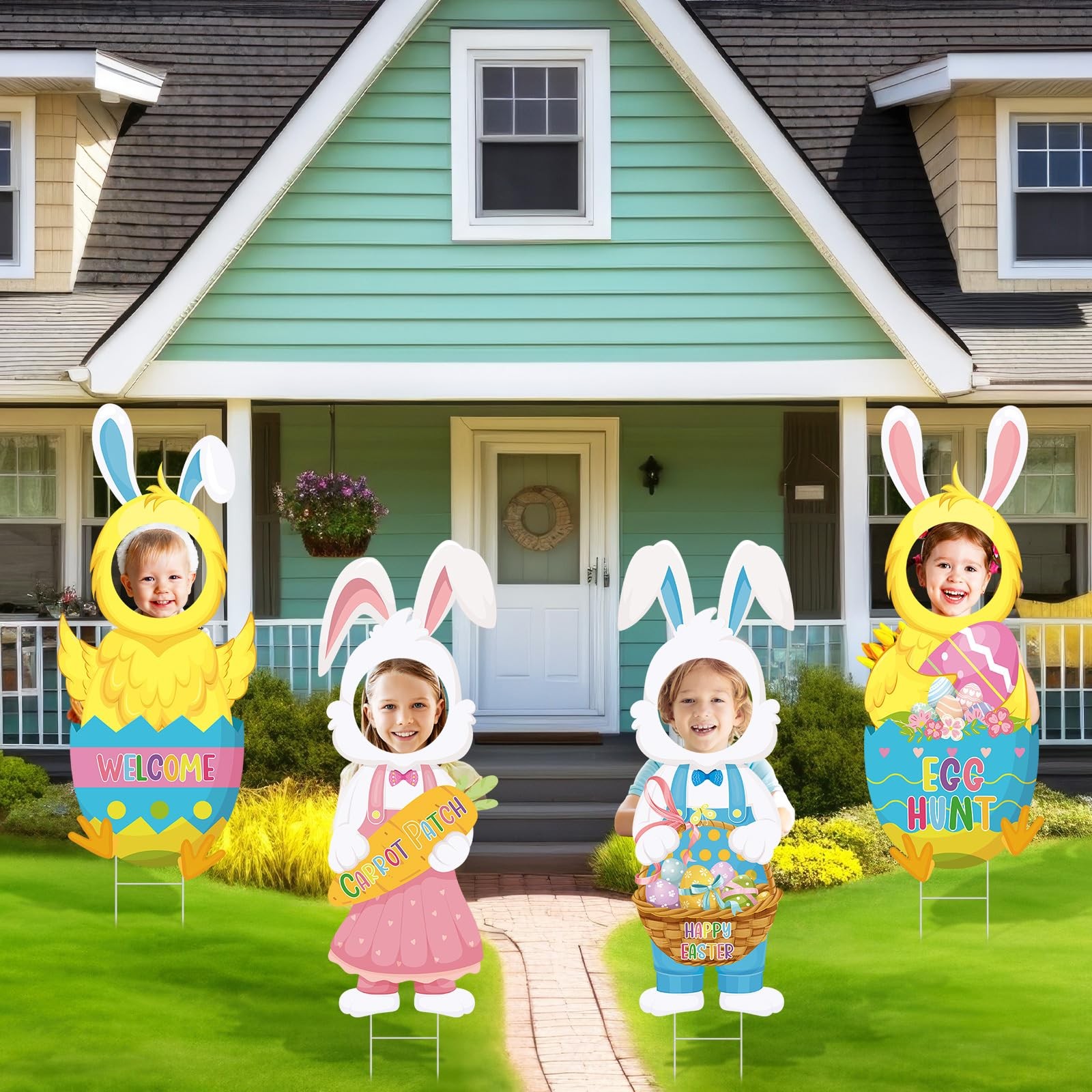 как выглядит 4 Pcs Easter Face Yard Outdoor Decorations Large Bunny Chick Lawn Sign with S... фото