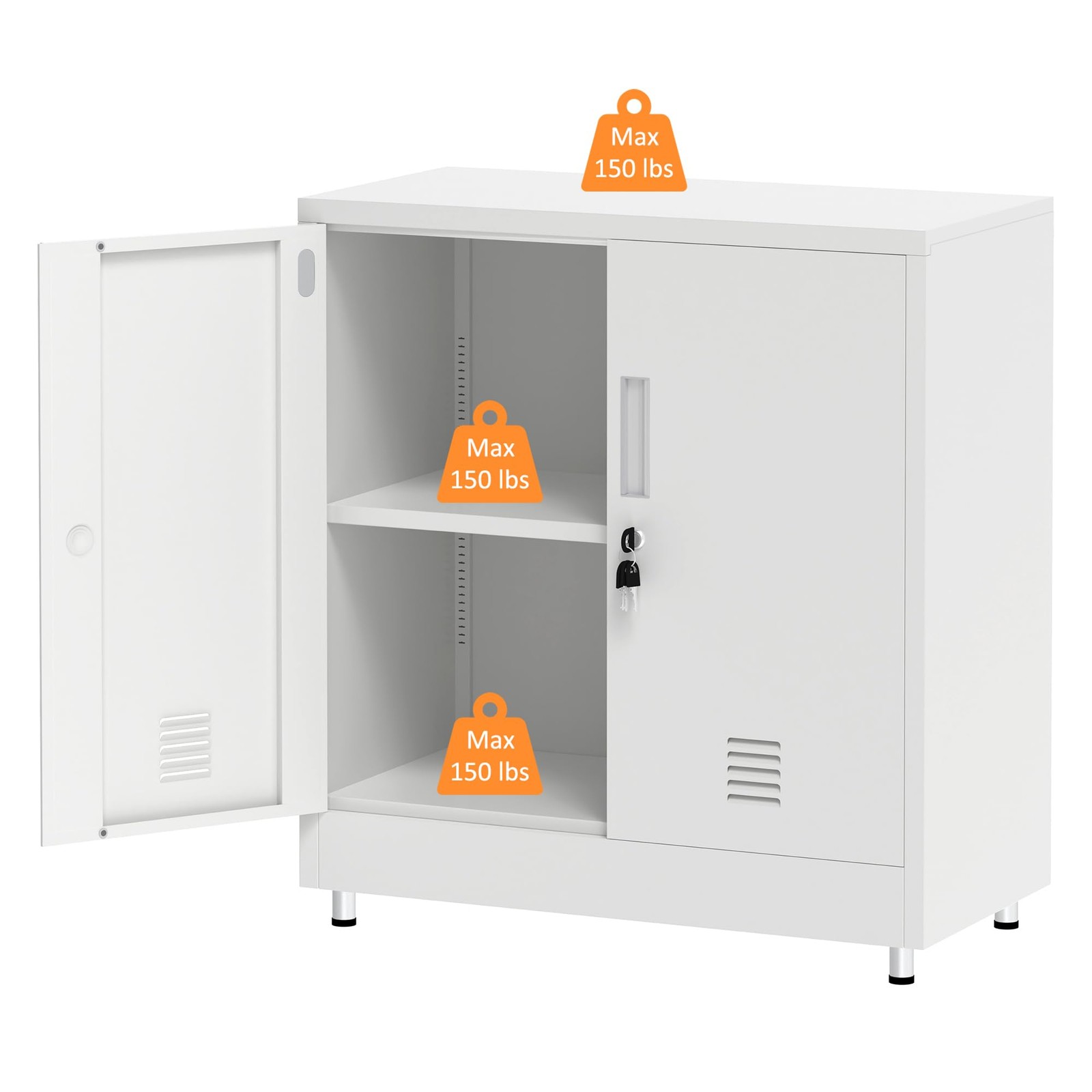 Included Components: 4 Keys, Adjustable Feet, Vented Doors