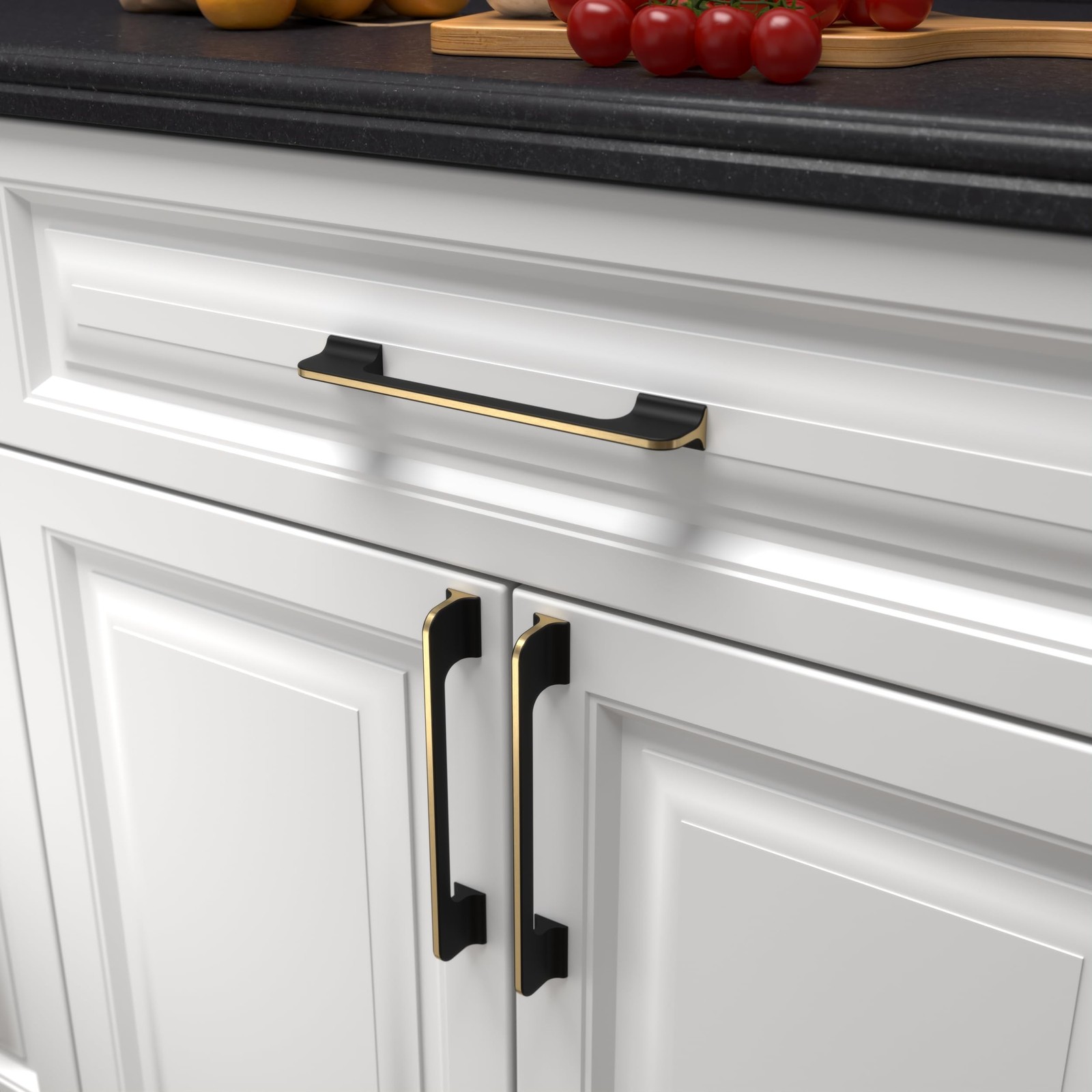 5 Pack Black Gold 6.3 Inch Hole Center Solid Metal Cabinet Handles Bath...