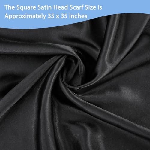 35 Large Square Satin Head Scarf, Silk Shiny Solid Color Scarves, Black