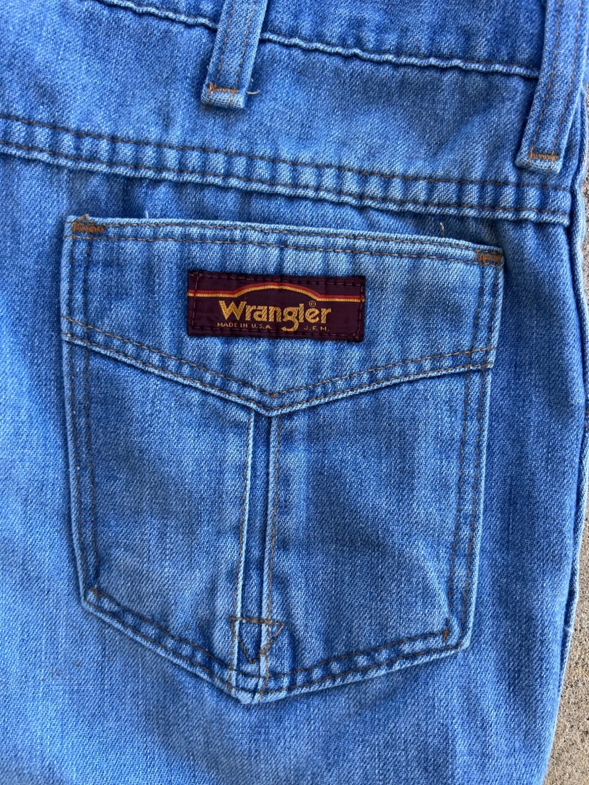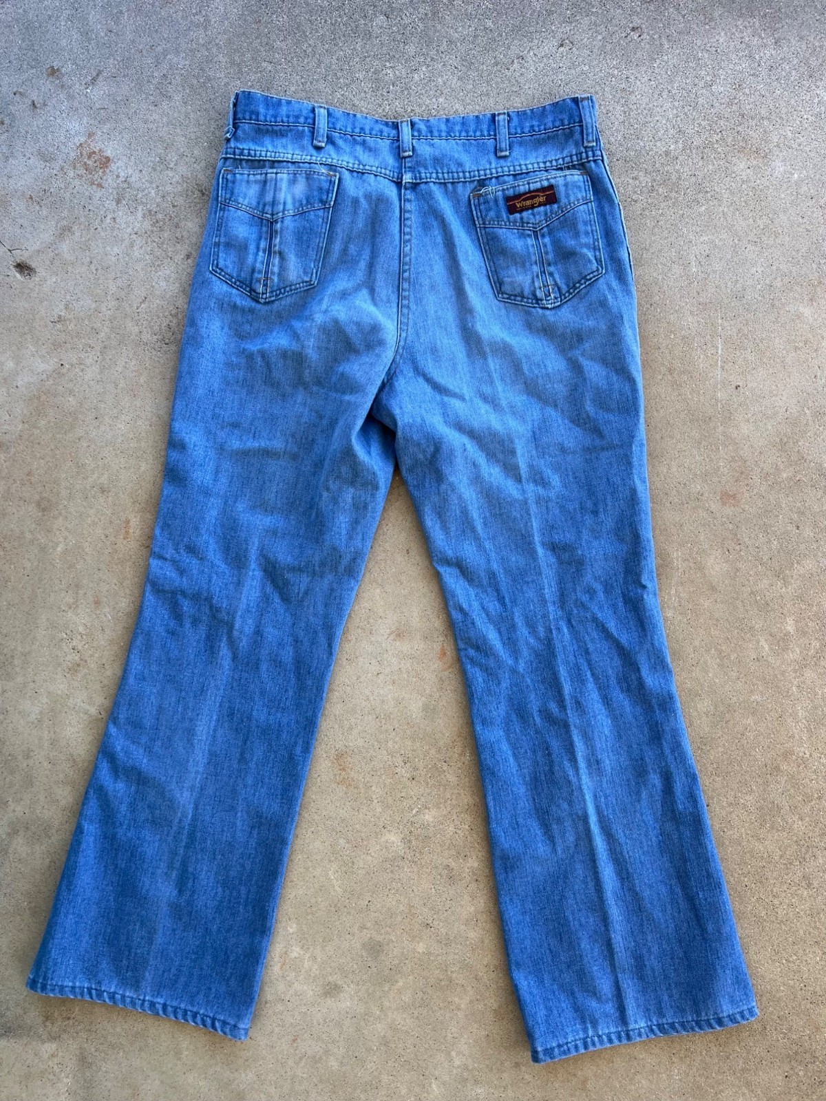 Vintage 1970s Wrangler Blue Denim Bell-Bottom Jeans Size 36 I3