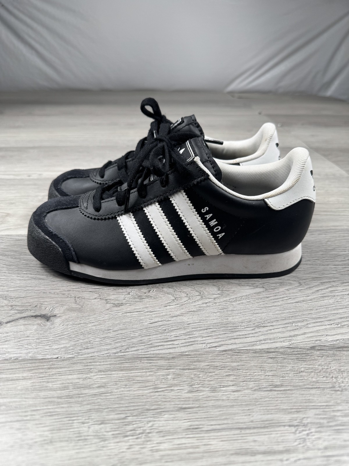 как выглядит Adidas Shoes Youth Size 3Y Black White Samba OG Gum Ortholite Leather Suede Toe фото