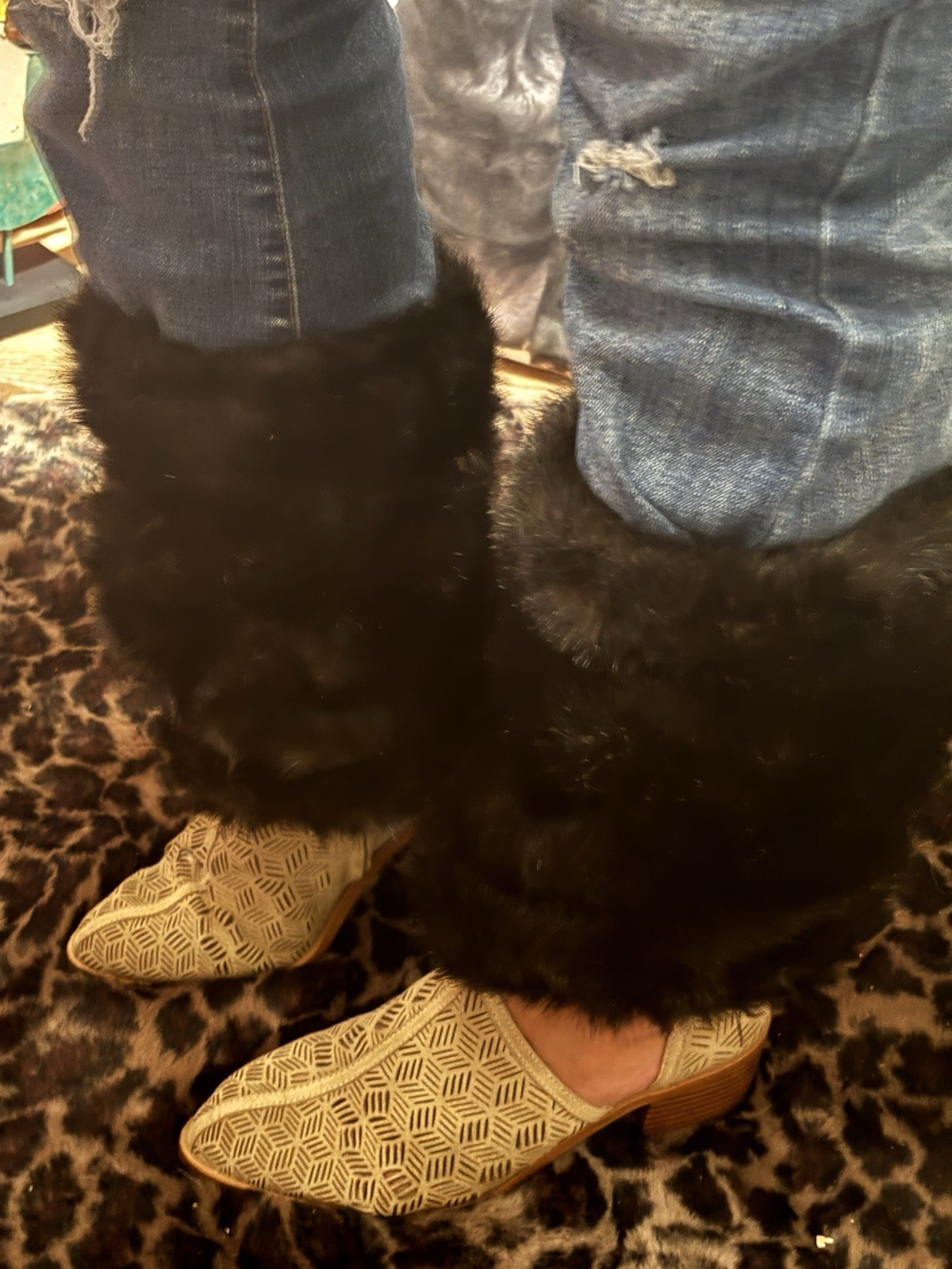 Black Faux Fur Boot Cuff Leg Warmers Footless Mid Calf 1 Pair Women