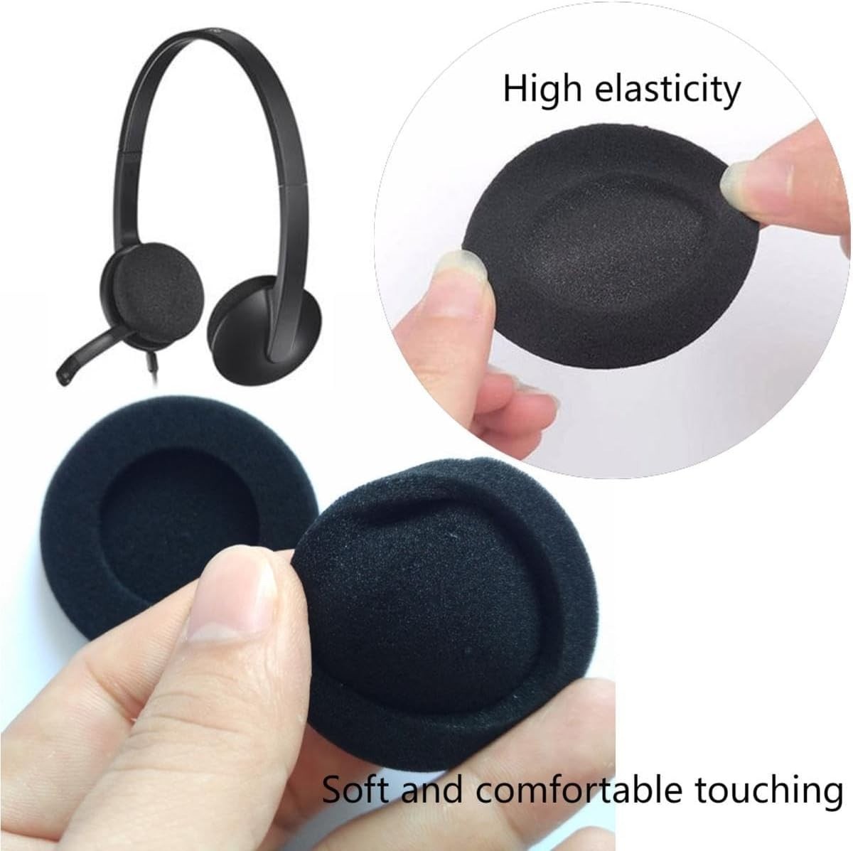 4 Black Memory Foam Ear Cushions - Perfect Replacement for Headphone Comfort
