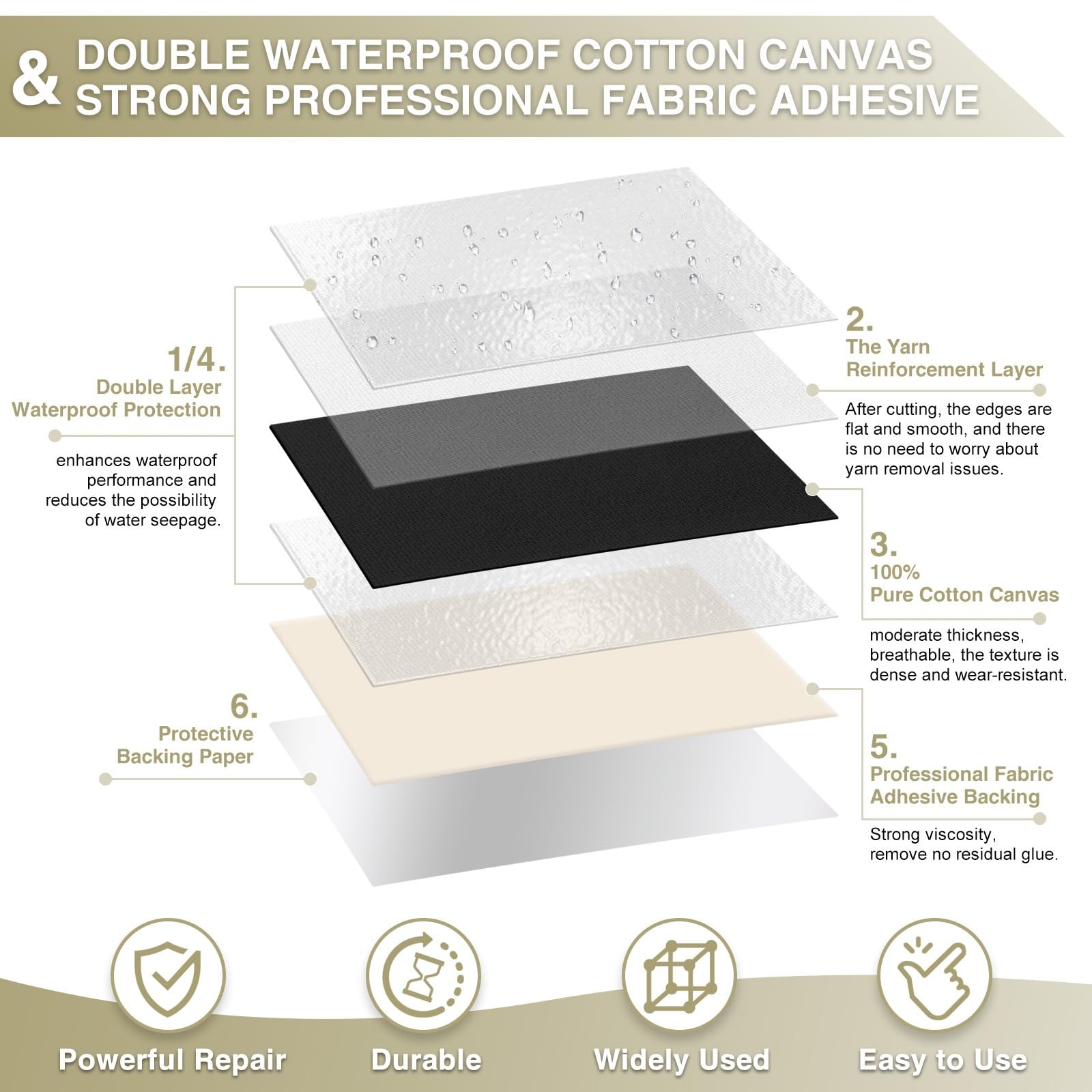 Gheeidau Canvas Repair Tape 4 70 Inch Waterproof Self-Adhesive 4 70, Black